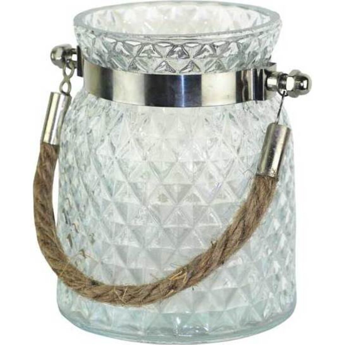 Lanterns come in many varieties but this piece created from glass , metal and rope is truly unique not just in the design but also in the combination of material- glass is cooler and more sophisticated, while rope is rustic and ethnic and metal adds that sparkle like nothing can and all of them do blend in with so much style in this piece. The lantern is made of cutwork glass shaped more like a vase or beaker and has abroad base on which the candle could be placed. The hemp rope is attached to its rim which is again quite wide-making placing of candles very easy. The metal ring that goes round the outer rim of the lantern is where the trope is attached making it very sturdy with not fear of getting disbalanced or detached. The light it will emit will be soft, sparkling with many rays. Special occasions would be great to hand this lantern for creating juts the right kind of mood. Great for lighting up the outdoors as well.