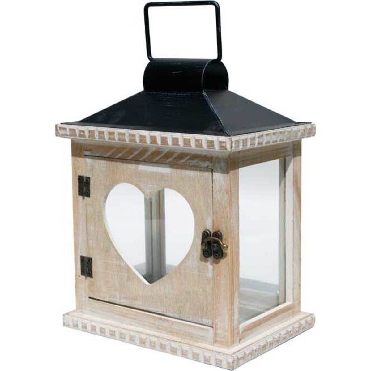 This Heart View Lantern is just what you've been wanting. It consists of a distressed wood base with a transparent window on the back and sides with a heart cutout in the front door. The roof is black as is the handle, which makes this little decorative accent easy to carry wherever you need to take it. There's a space inside for a candle, which you'll be able to clearly see from every direction. There's no doubt you'll fall in love with this item from the moment you first use it.
