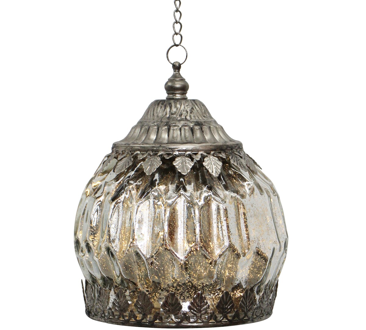 Made from glass and metal this lantern is a mere 14.5 cm in height and 13 cm in diameter with its curving shade and metal rim. A definite choice in case you wish to make your entryway or neglected corners of your room look brighter and more attractive. The simple hanging it needs will make them versatile in their placement. Once lit, the light will shine through the shimmering glass body and help illuminate the space in soothing light. The chain that holds up the framed globe will do a great job in keeping it at the right height. A great pick if you wish to infuse a touch of tradition to your décor-after all, a design as oriental as this can certainly make the difference in case you wish to lean to a more traditional look. You could hang several of them to make your décor more oriental and mid-eastern in its look.