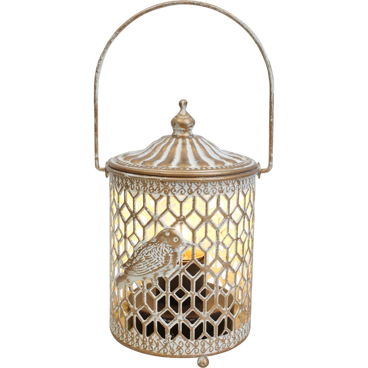 Perfect for gift-giving or as a treasured keepsake, this lantern is not just a source of light but also a conversation piece. Its LED feature ensures efficiency and safety, eliminating the need for open flames while providing the warm ambiance of candlelight. Whether displayed on a bookshelf, desk, or patio, the Lantern LED Bird Gold/Wash is sure to captivate and charm consumers seeking a blend of functionality and artistic flair.