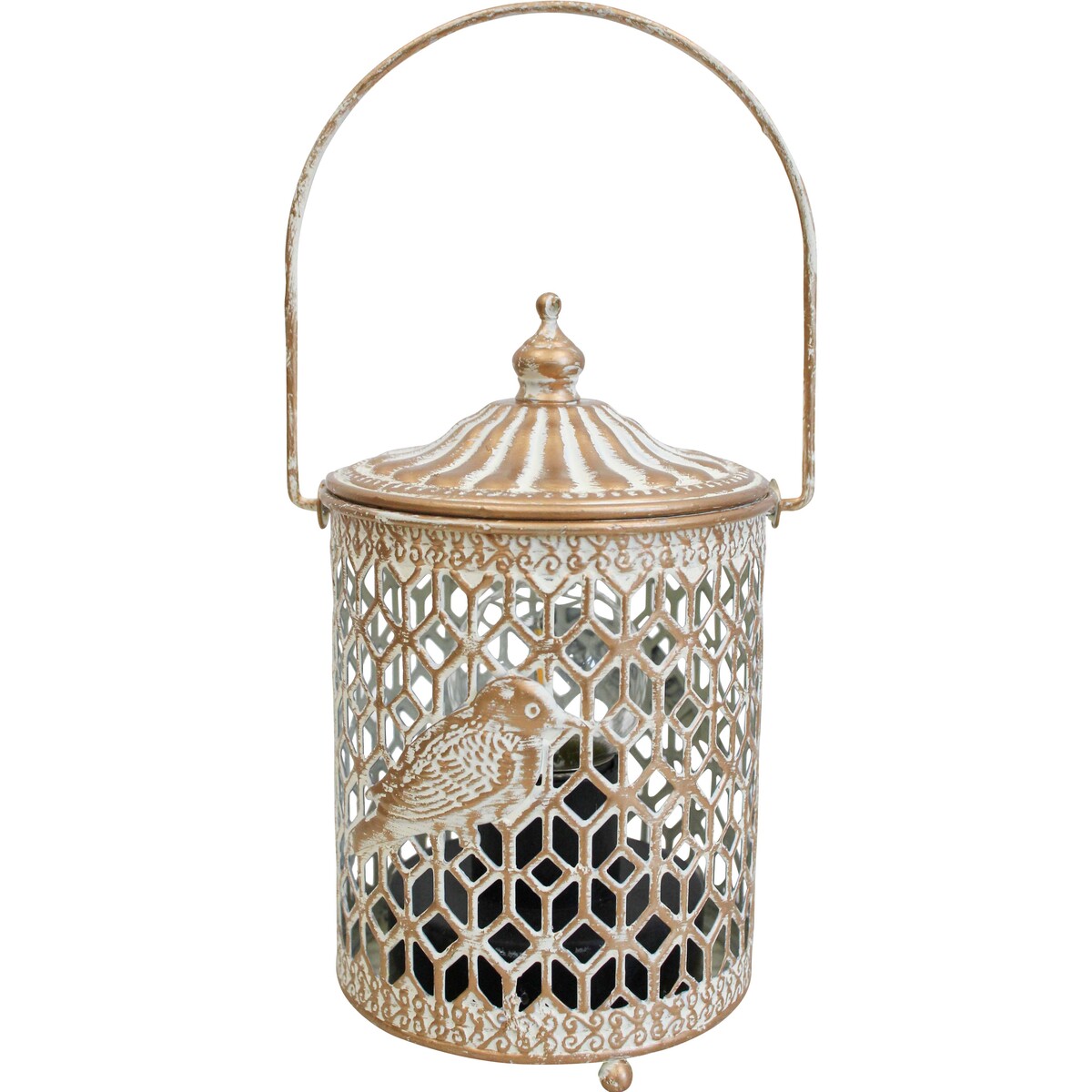 Crafted from sturdy 'Metal', this lantern boasts durability as well as style. The delightful silhouette of a serene bird is skillfully integrated into the design, providing a nature-inspired element that complements a variety of decor themes, from traditional to modern. The soft gold wash adds a touch of elegance, serving as a versatile match for any colour scheme.