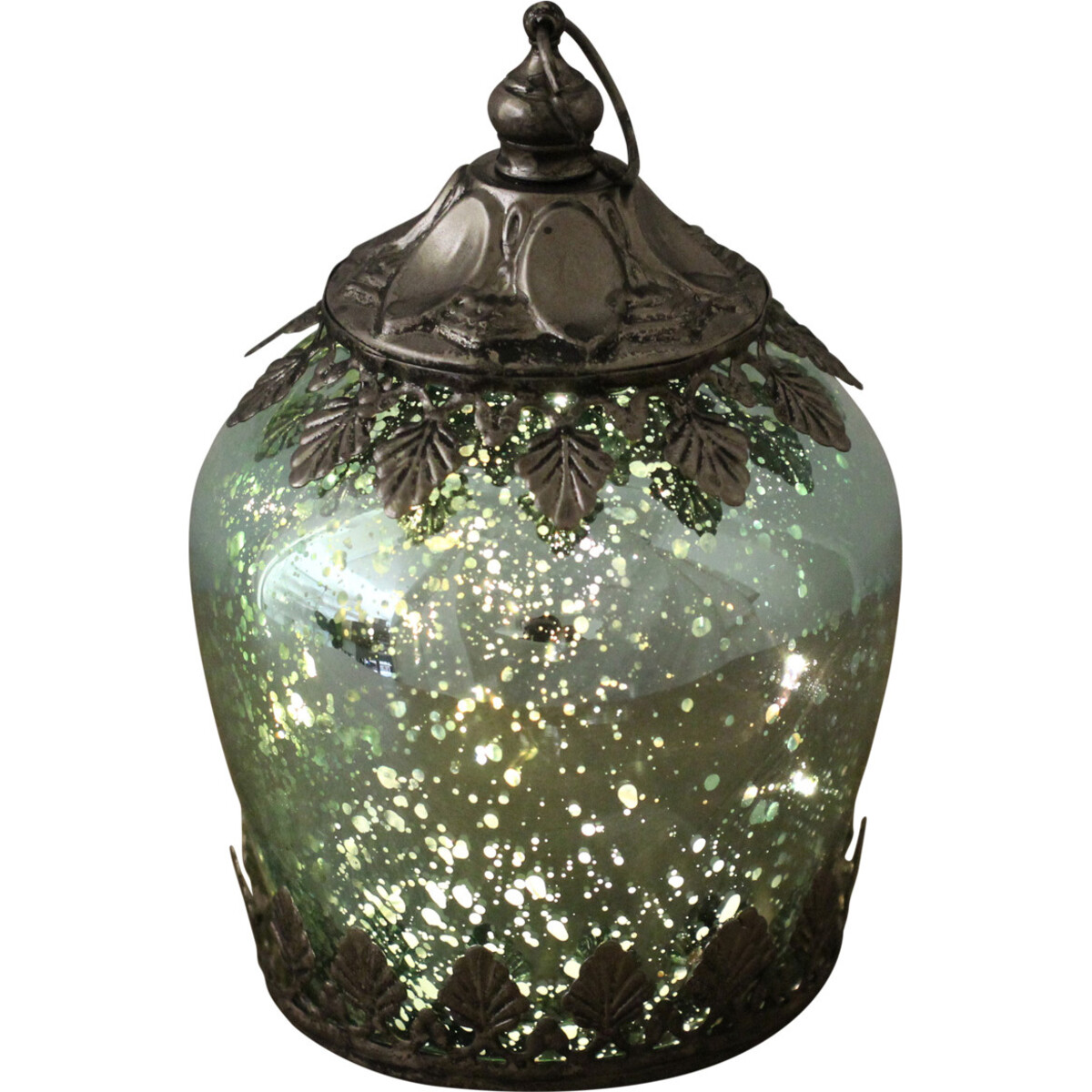 Not only is this dramatic accent a decoration that glows with distinction but it is also both stylish and practical. The LED light will shine brightly through the speckles bringing all the ambience of a real candle without the worries that come with a real flame. In a traditional lantern shape with a leaf-patterned base and ornately designed metal pointed top, this lantern contains an LED light that glows for cozy and atmospheric lighting. It will even fit aesthetically into the indoors too as a decorative piece on a shelf in the living room or kitchen.