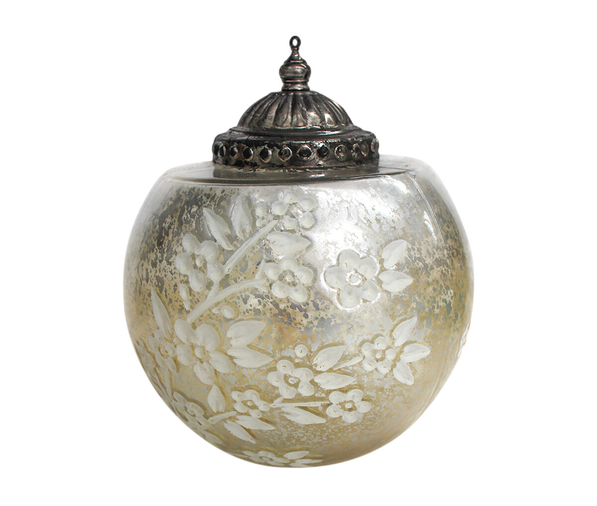 When it comes to interiors, lighting can play a vital role in giving it just the look you had always wanted-after all, it is the ambiance of classic interiors that is elegant. Warm and relaxing that makes any space look its best and lamps and lanterns help you achieve just that. This slivery grey lantern is all of 18 cm in height with a diameter of 13 cm with metal made top from which hangs the ring that helps you hang it with ease. The gorgeous floral vine pattern on the body makes it all the more attractive. Place it high and low in twos or simply have them line up in row-the more the better the illumination-or simply opt for a single one right above the space you wish to make more prominent. Fitted with fairy lights -it begins to glitter with a muted kind of glow when switched on.