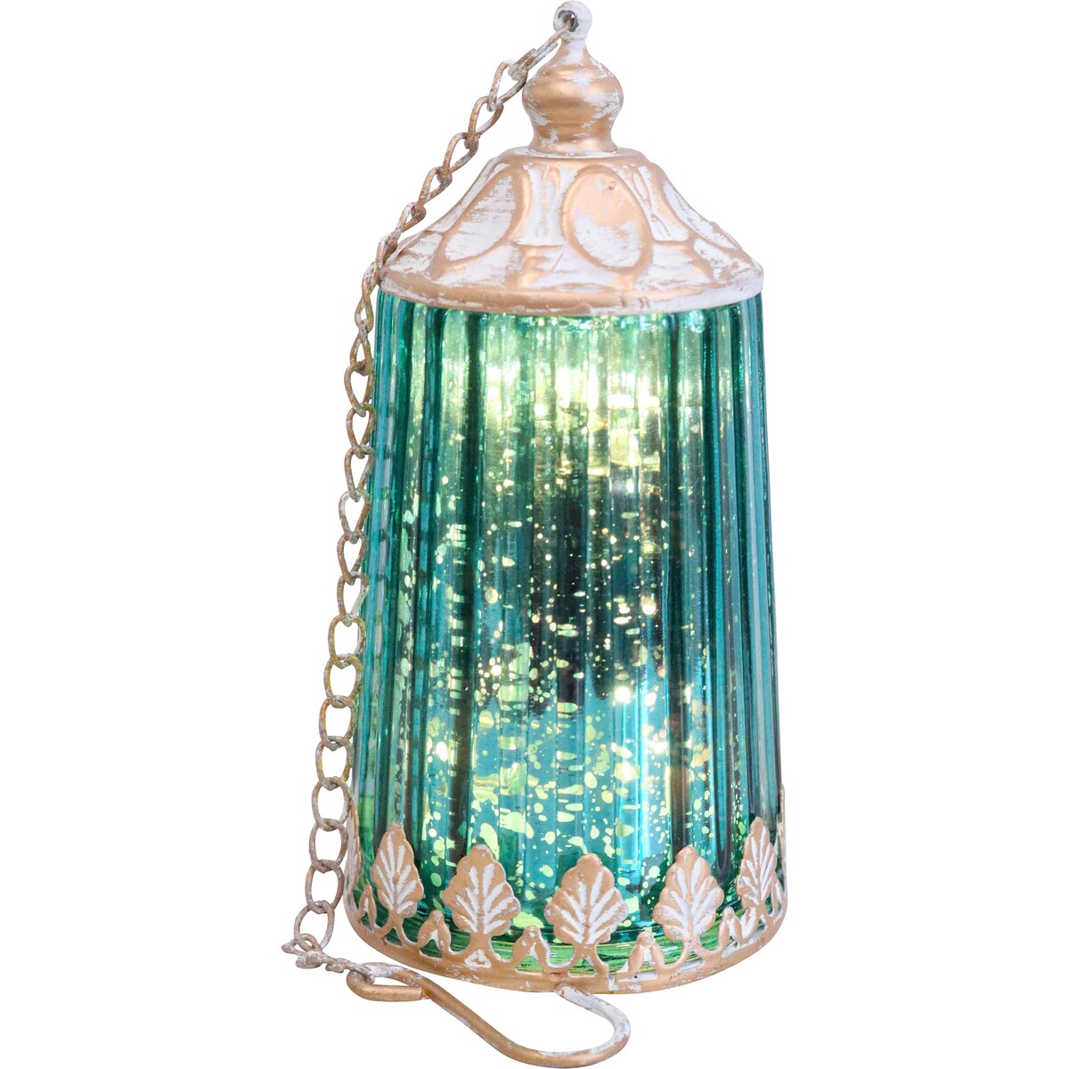 Discover the charming glow of the Lantern LED Letti Mystique, a blend of traditional craftsmanship and modern function. Standing at a delightful 6.5x6.5x14cm, this exquisite piece is a compact treasure that is perfect for adding a warm ambiance to any space, whether it's your cozy home or an elegant office. The lantern's body, made from glass and metal, features a radiant green hue that catches the eye, while the intricate leaf pattern at its base infuses a touch of nature into your decor.