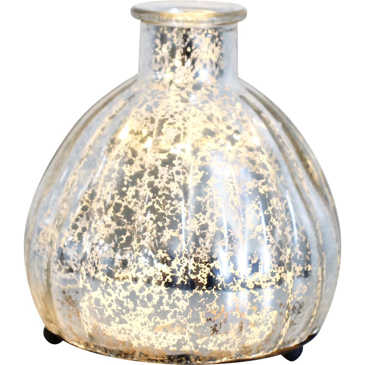 The modern tweak comes from the usage of LED lights and the delightful usage of gold highlighted mercury glass adds that needed glamour. The LED bulbs light up and bring to stage the drama of its good looks. The highlight of course is its ability to be used in the indoors and the outdoors as well. The lantern is easy to place on tables and mantles-its height is large enough ot be a statement maker. About 9.5 cm tall and 8.5 cm in maximum diameter-the lantern has a stand on which its round base balances well, the design is simple but impressive in its neat finish. The silvery streaks of colour on the glass adorns the beauty of this piece. Only about 8.5 cm, it’s bound to be loved for its compact size and ability to fit in with all kinds of décor styles.