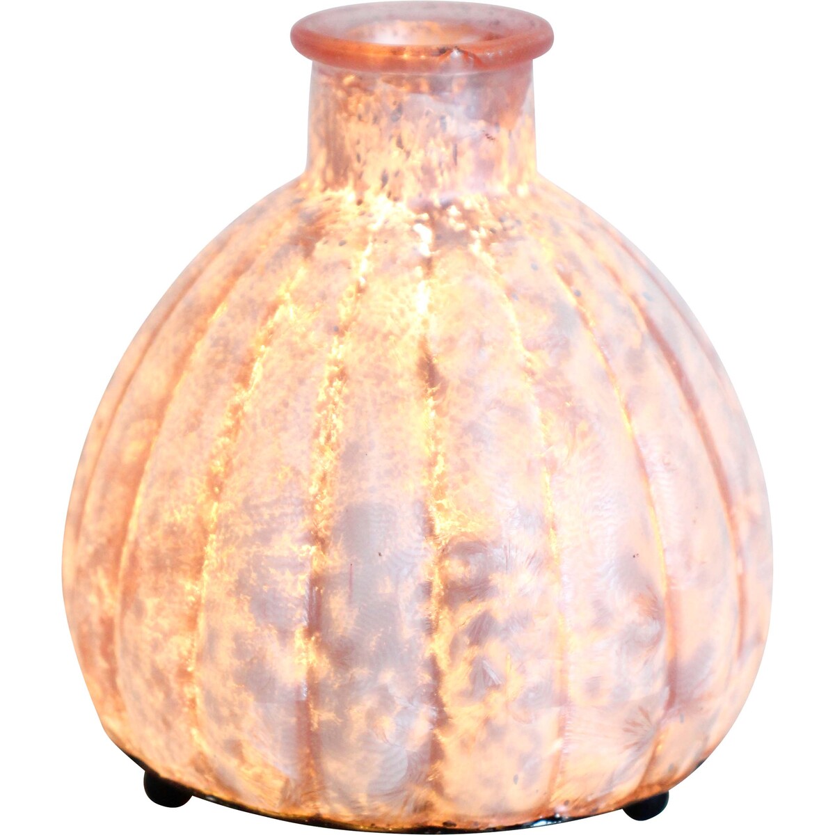 Bring a delightful twist to your setting with this table top lamp. The bottle shaped lantern is fitted with LED lights making it a versatile addition that could be used as much in your outdoor setting as it can in the indoors. The Midi sunrise mingles amber, a hint of yellow and a quiet shade of orange and crates a rich colour effect that promises to elevate the look of your spaces. Only about 9 cm tall it has a diameter of 8.5 and its demure size makes it easy to fit on to little table tops and shelves with ease. The thick and partly opaque glass allows adequate brightness to spread all around. Embellish your regular décor with some lanterns this holiday season to create just the right kind of mood and warmth in your spaces.