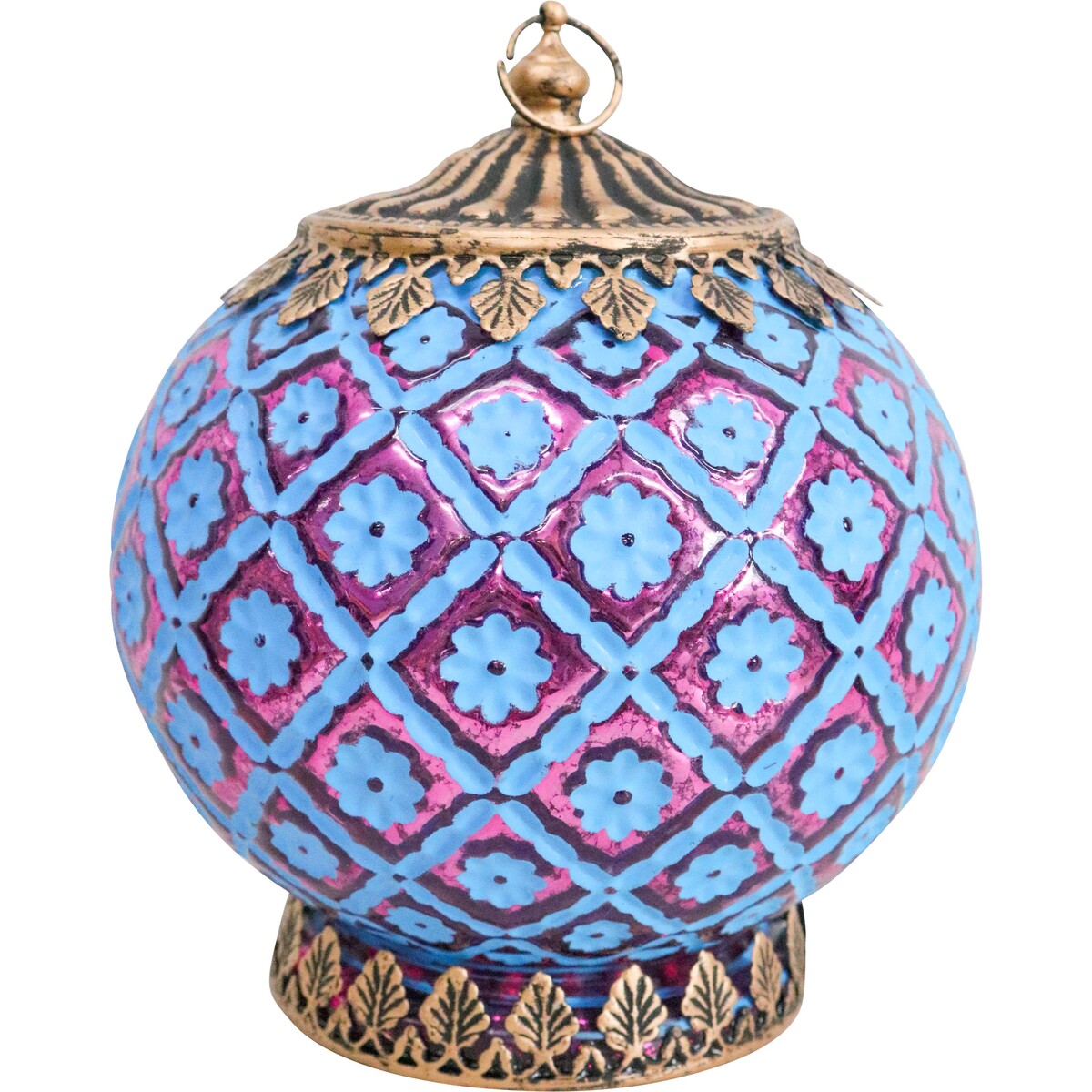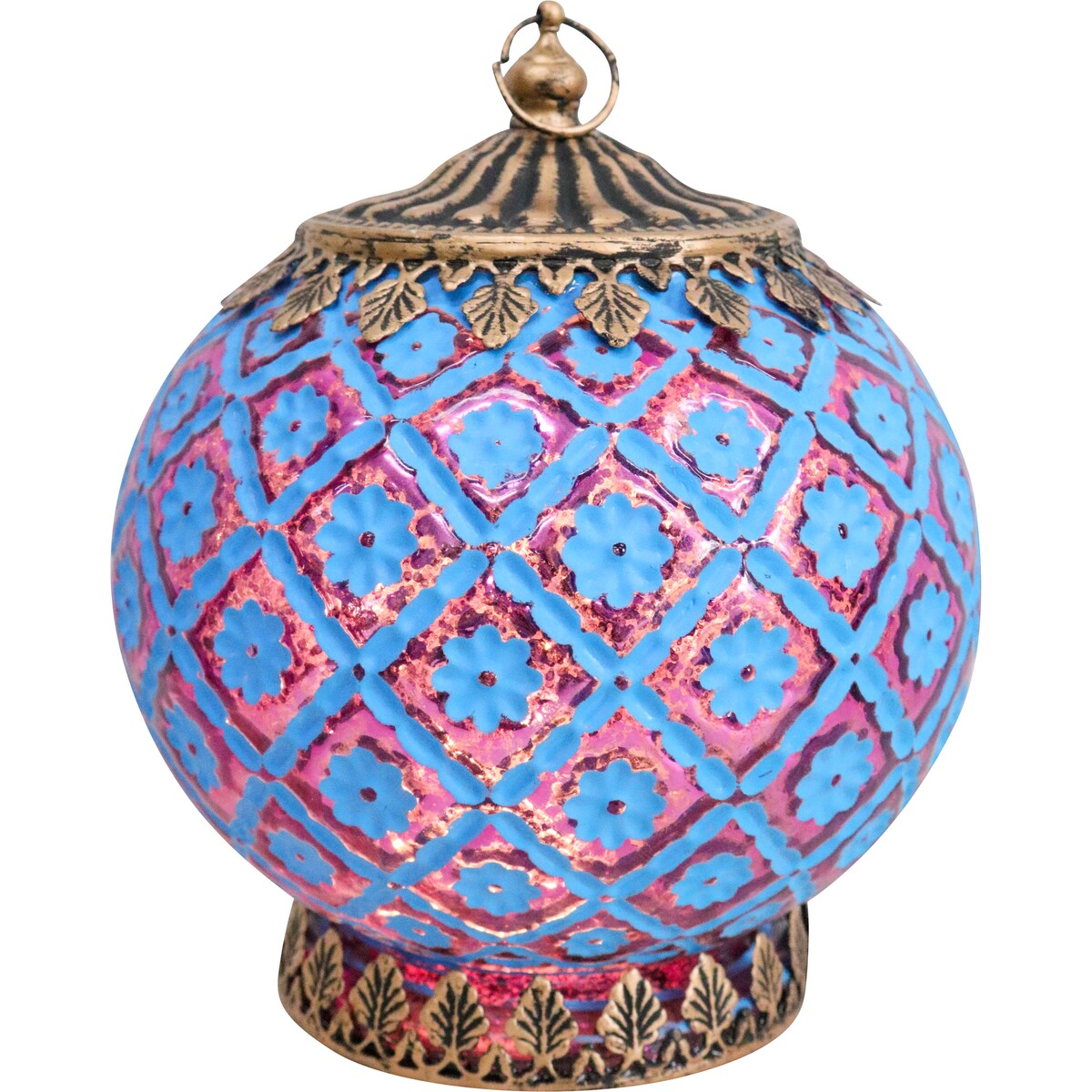 This one is 15cm wide by 16.5cm tall, with a gorgeous textured metal top and base plus that blue-and-pink-tile glass shade. The vibrant raised pattern is a bit different than a lot of the other LED lanterns out there - we think it really stands out, even before you switch on the warm glow. These are great for lounge rooms, alfresco dining spaces or office workspaces that need a little colour and character. They’re also just that little bit larger than your average decorative lantern so they really look impressive displayed on tables or sideboards in any room.
