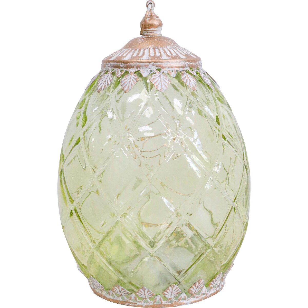 Elevate your home or office decor with the exquisite Lantern LED Short Apple. Measuring 12.5x12.5x18.5cm, this charming piece beautifully combines functionality with aesthetic appeal. Crafted from premium-quality glass and metal, the lantern boasts an intricate lattice design on a striking green glass body, enhanced with delicate, leaf-like accents near its top and bottom. The blend of glass and metal imparts a vintage charm while ensuring durability and longevity.