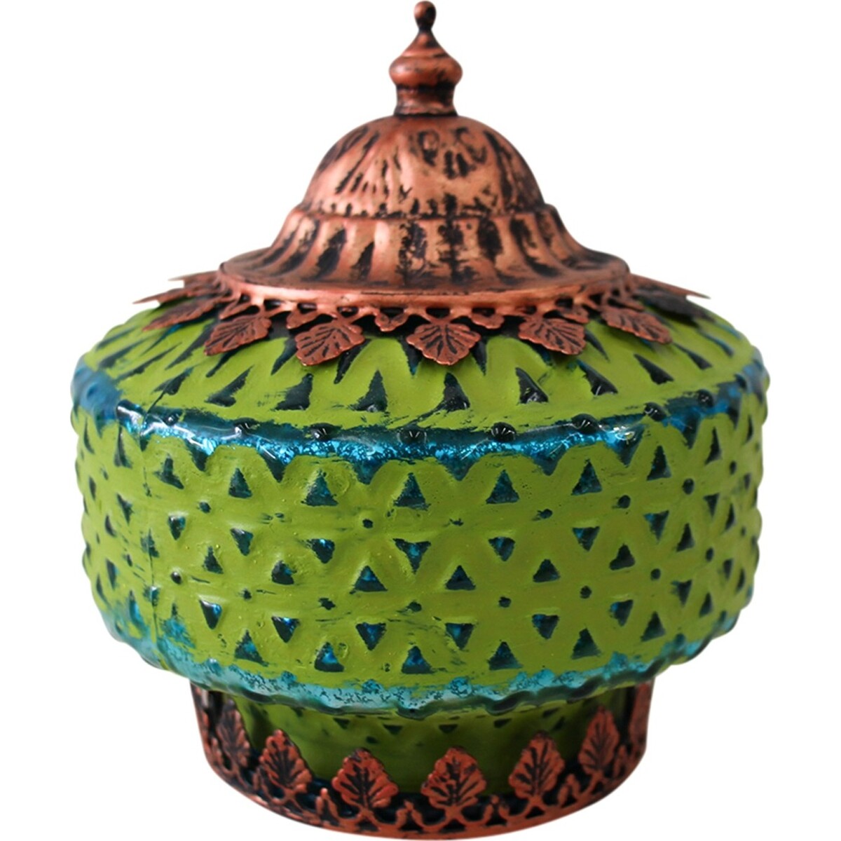 The ingenious design of the Lantern LED Squat Yellow makes it possible to create a bit of artificial yellow sunshine in homes, churches, temples, parks, palaces, restaurants, hotels and a host of other settings and space without the attendant risk of sun-burn, sun-glare or heat. Made of premium superior quality glass, it is painted in a rich yellowish-green on the outer surface while covering the whole decorative glassware is an adroitly crafted, bronze-coloured metallic covering. The base is likewise covered in the same intricate metallic craftwork. Contained in it are LED fairy lights that act as the source of illumination for the decorative glassware. Each carton of this decorative glassware that you order would contain 12 Lantern LED Squat Yellow.