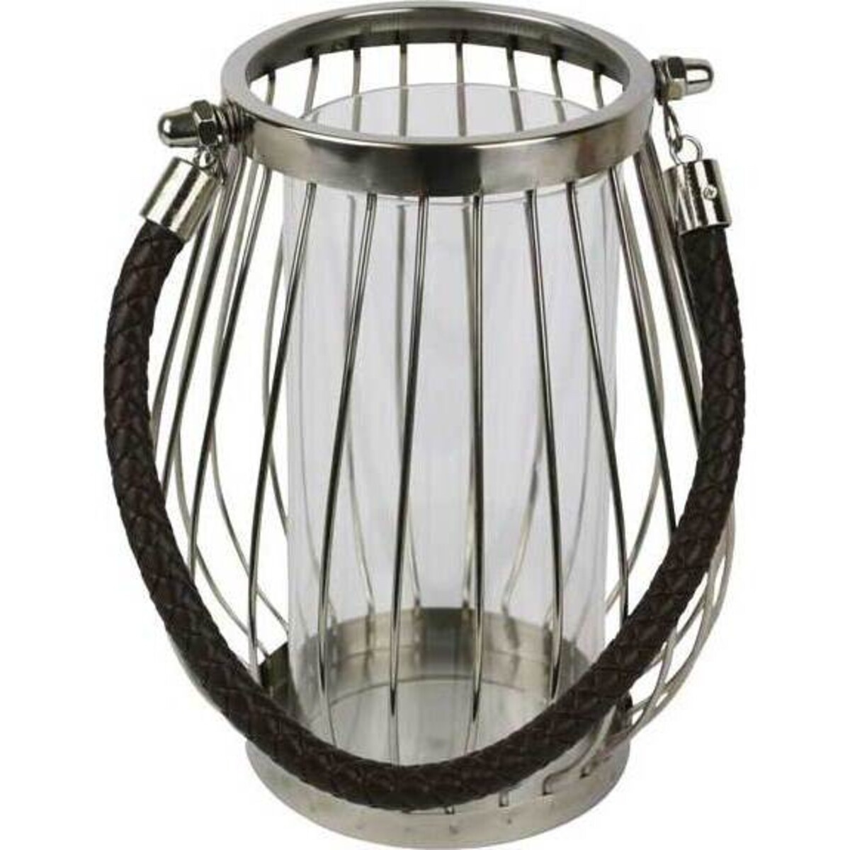 The metal line design has rows of metal rods in a very thin and delicate style running down in a linear fashion all along the body while the hurricane glass cylinder sits within ready to hold a pillar candle in it. This lantern is superb mix of material, colour and texture. The play of steel, the black leather PU handle and the gorgeous glass inner cylinder come together to create a unique design that is modern in look and truly an ancient style of lighting. Add this in clusters in the exterior to bring on some serious mood lighting or place it in corners and see how this 18 cm tall and 15 cm wide lantern can change the way interiors begin to look when the candle within is lit. The quality of metal used is tarnish free and the handle will help one shift the lantern form one place to another with ease. The rim in which the hurricane cylinder fits in, the tiny little joints where the PU leather handle is fitted to the rim and the curved body all speak of the concern for detail that Lavida's products have.