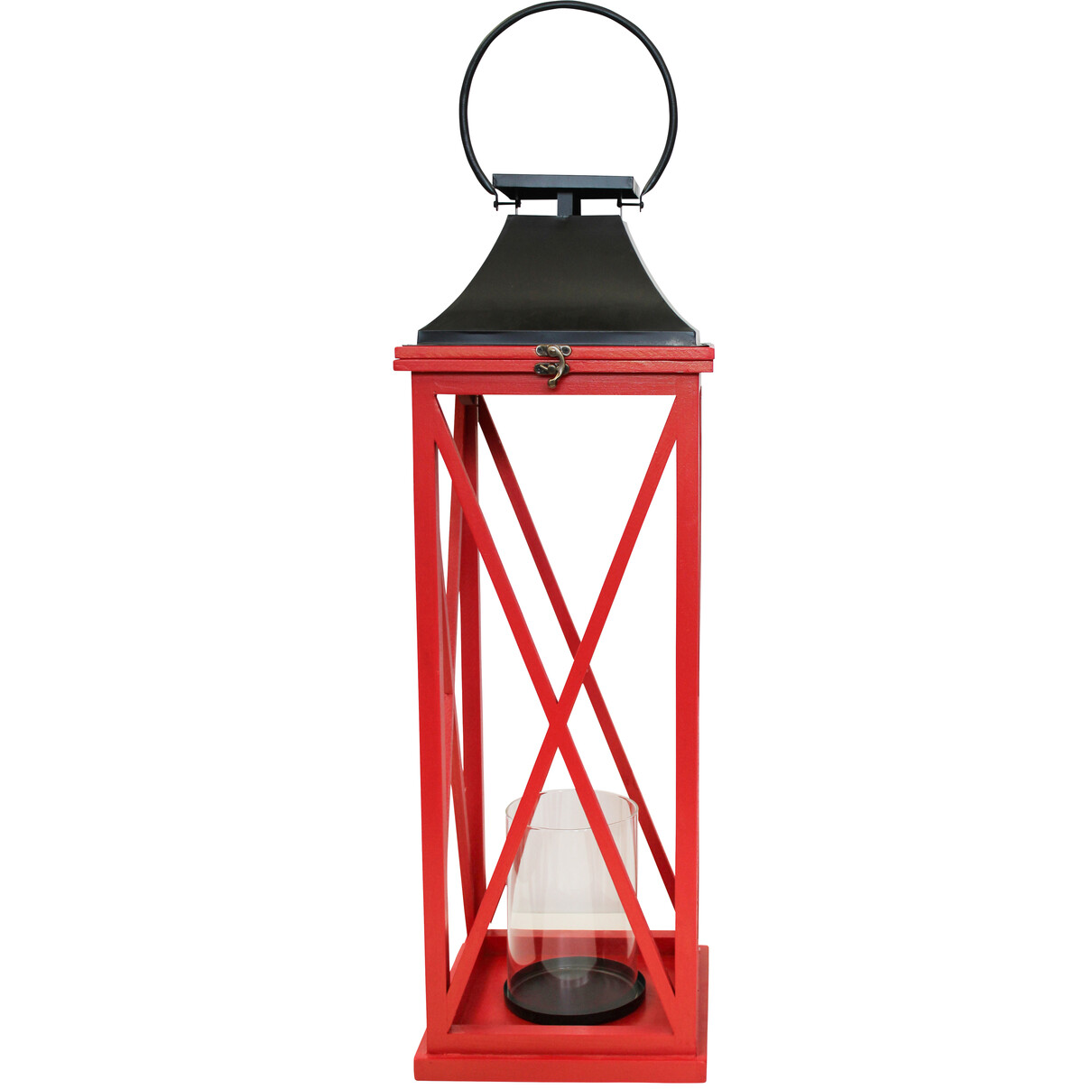 Standing tall on its flattened base as it is made in a vertically inclined dimension which measures a large 25 centimetres in length, 25 centimetres in its width and a whopping 75.5 centimetres in height, this # Lantern Festive Lrg is indeed a large sized lantern that would be perfect in making a bold decorative statement both on special festive occasions such as this forthcoming Christmas celebration and also suitable for everyday interior decoration. It has an ergonomic black painted metallic handle and comes with a crystal clear glass insert.