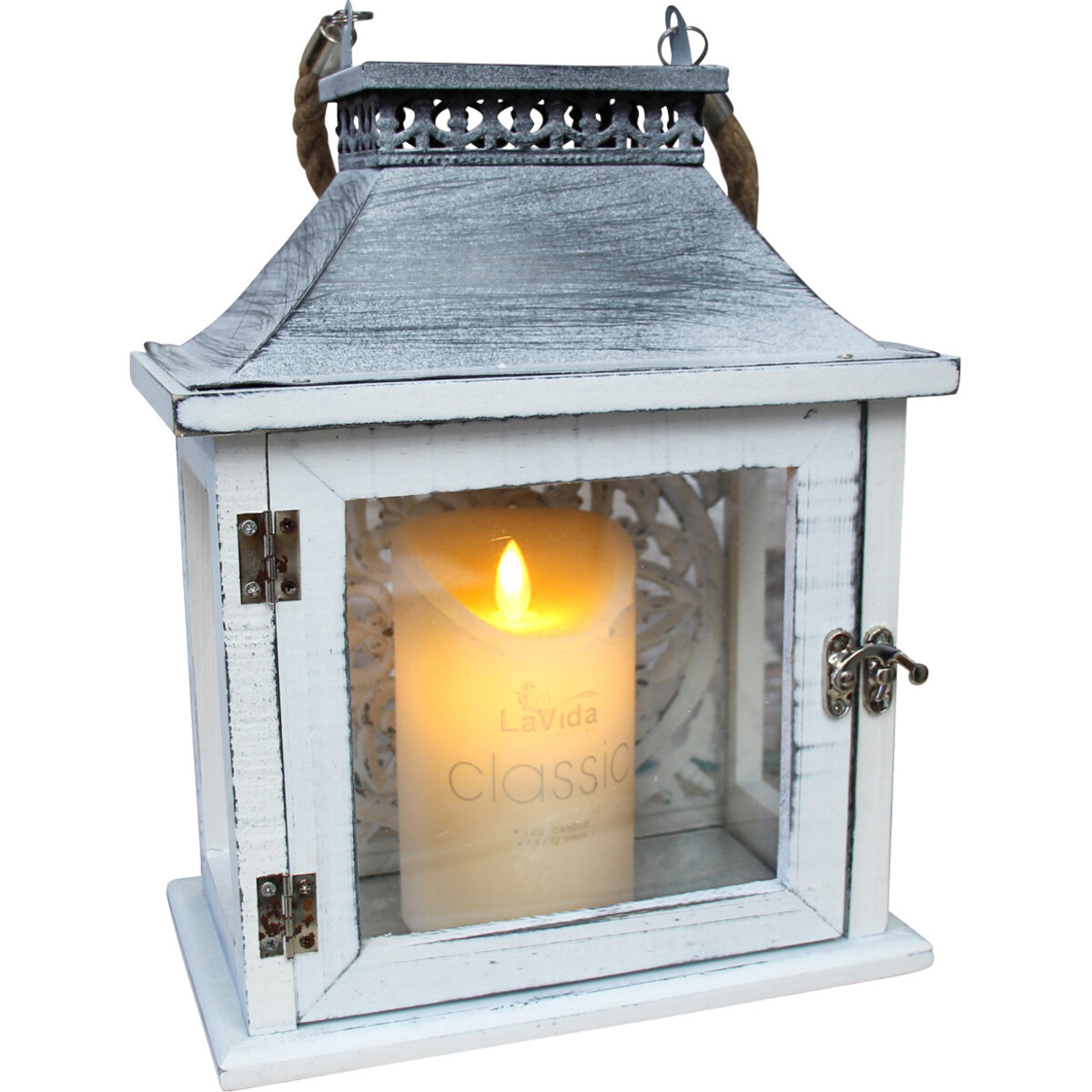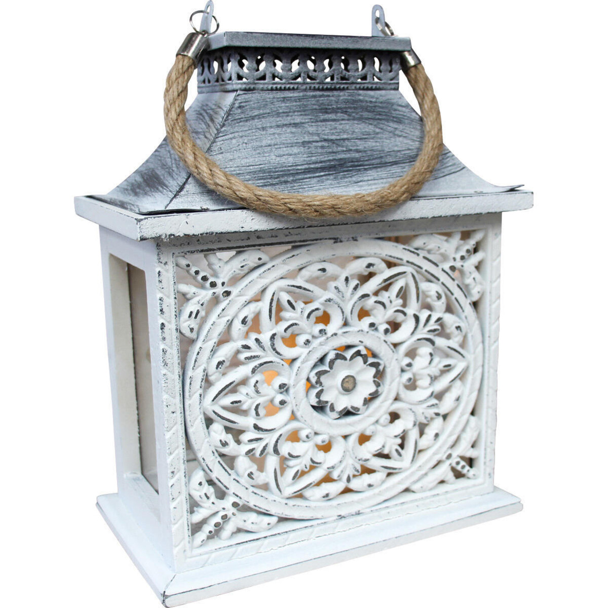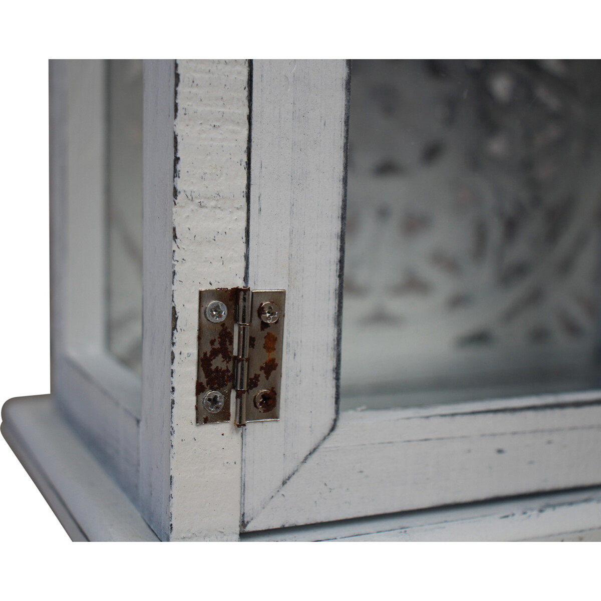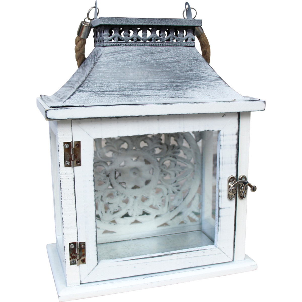 Adding soft mellow lights , especially with the help of lantern helps soothe harsher lines in the visual spectacle that you see- and thus builds in warmth and comfort and an easy to way to attain this feat in your décor is to opt for lanterns as they will hold the candle inside and endow the space with the kind of lighting that is desirable. This lantern has a depth of a mere 13 cm while its height is 27 cm and its length is 22 cm. Its face shows off the pattern while the two sides are clear of any pattern with only glass covering it. The light filters through the gorgeous pattern that has been crafted on MDF. The rope loop on the top allows you the option of converting this into some kind of a hangable light as well-especially if you wish to take it outdoors. The glass, timber, MDF and metal combination makes it quite sturdy and despite its size, it's easy to lift and shift to a place pf your choice.