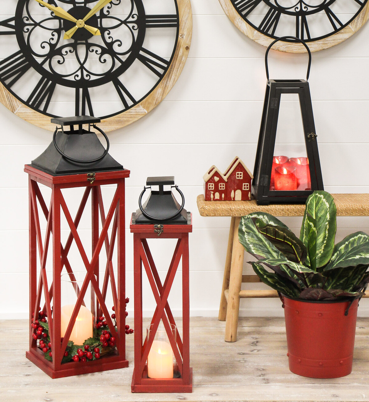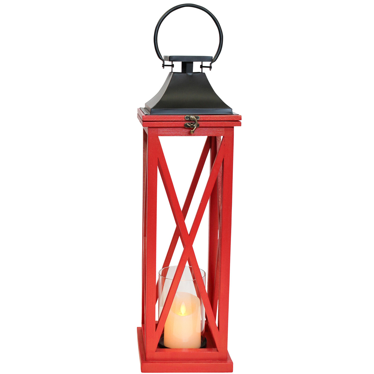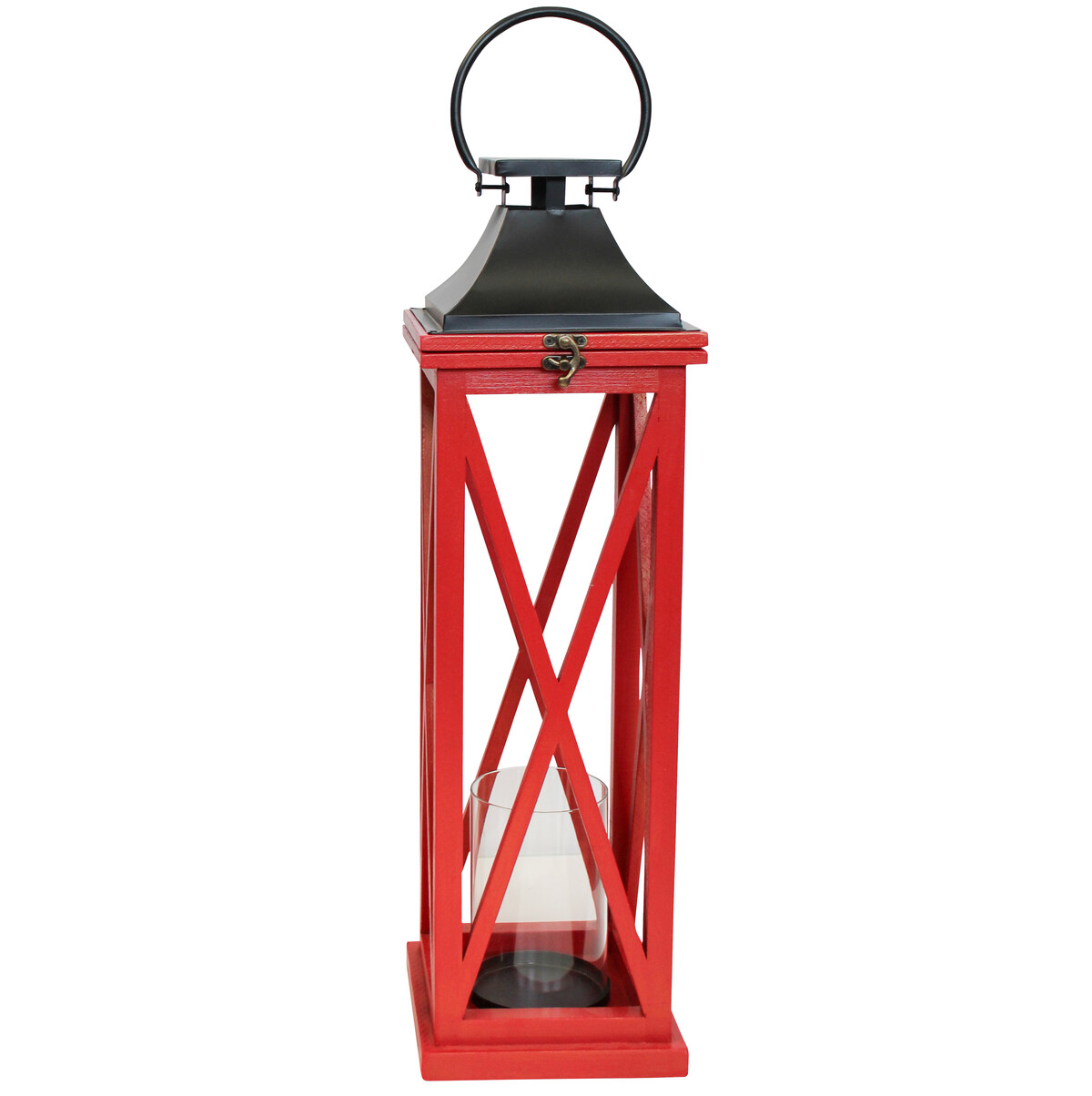 Showcasing a vertically inclined lantern which stands tall at 61 centimetres in height, 18 centimetres in length and 18 centimetres in width, this # Lantern Festive Med is a moderately sized lantern that makes such a classic decorative statement. Made in a customer friendly design in which it has a metallic handle that provides firm and comfortable grip. It is also sold with a crystal clear glass insert within which the wax can be kept while helping avoid drips on the lantern and/or surfaces on which the lantern would be placed. The metallic top is painted in jet black colour while the rest of the lantern is painted crimson red.