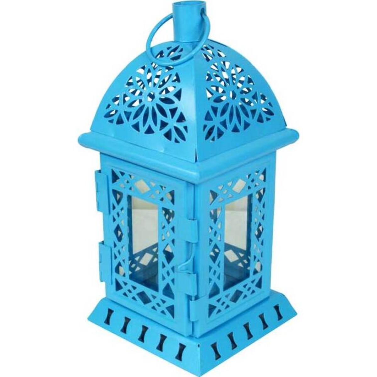 Lantern Miccro Blue measures 10x10x21 cm and consists of a Lantern of vibrant colour. It can be employed for illuminating various surroundings, depending upon the preference of a particular buyer. This lighting device is Miccro Blue in appearance and features perforations at various points to ensure it keeps well - aerated to perform its functions at optimal levels at all times. The top part is dome - shaped and features a round ring at the top - most part for hanging objectives if this proves desirable. As well, the sides are fitted with glass to complete its aesthetics and control the interior temperature.