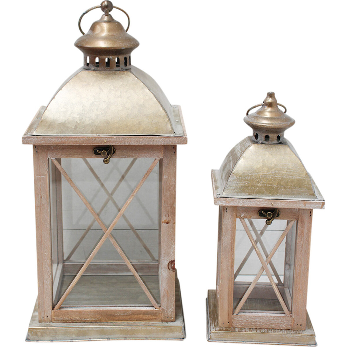 Containing two differently sized versions, both sizes of lanterns contained in this #Lantern Beachside S/2 possesses such impressive ornamental appeal. Both lanterns are made of the same materials, in the same design and with the same finish but differ only in size. This lovely set is made using top quality metal material which constitutes the handle, top and the lantern's latch; it is also made using 100% natural wood and crystal clear glass. It even has a small handle on the top for easy handling and hanging. Both can either be sold as a set or individually.