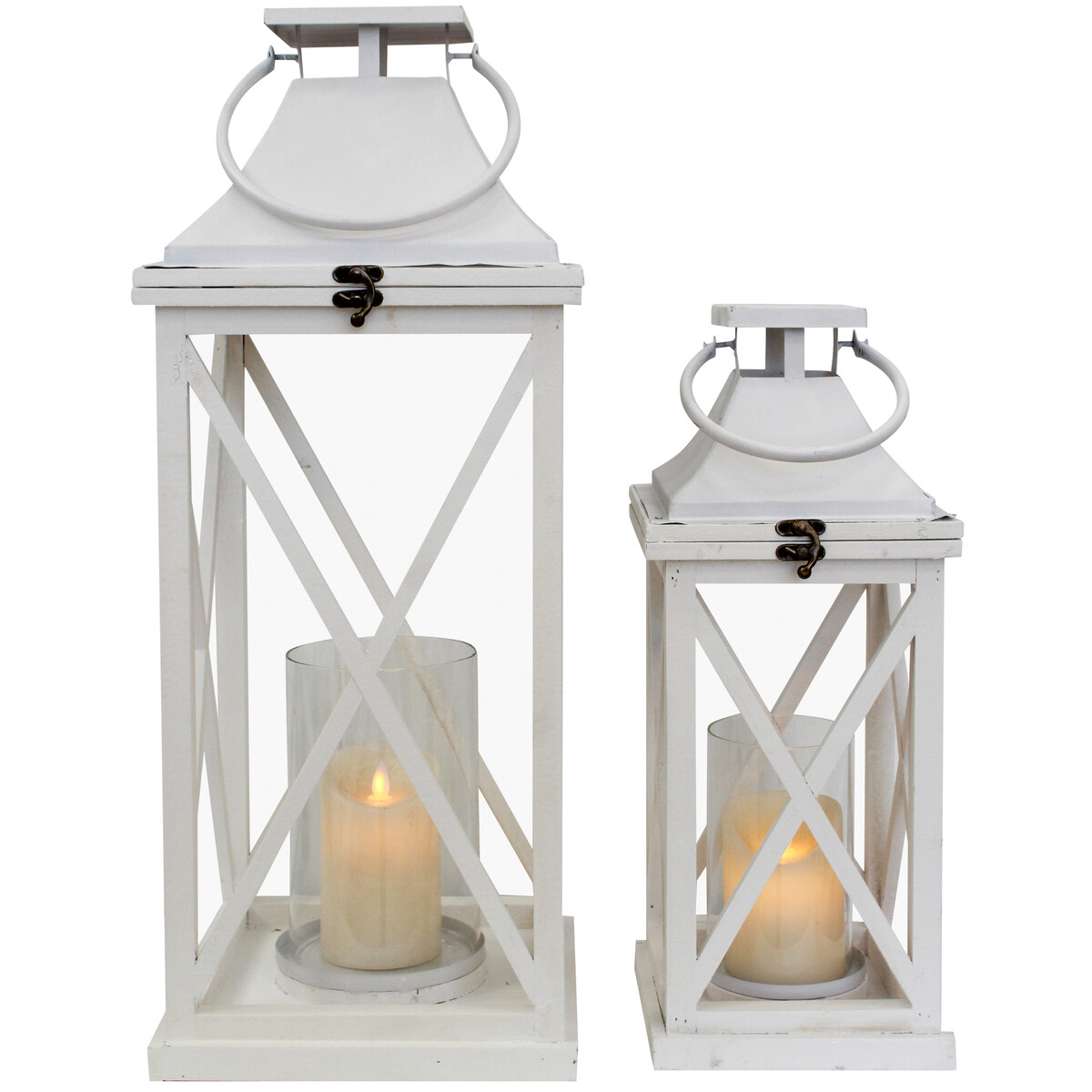 This #Lantern Noosa S/2 White is a set of lantern which consists of two differently sized lanterns but possessive of the same aesthetic allure and design. Each piece showcases a lantern that has its top made through the artful use durable metal material with a pre-attached handle which makes it possible fpr users to be able to conveniently carry lanterns. Its sides are made through the use of medium density fibreboard material and supported by crystal clear glass. It white themed palette makes it perfect for use in special occasion such as at weddings, anniversaries, Christmas celebration, etc.