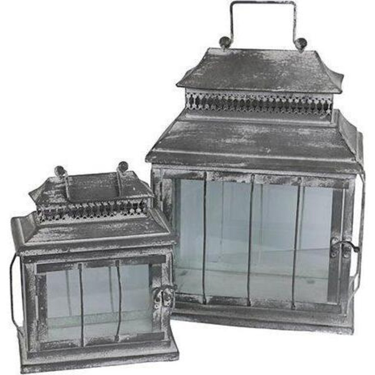 This lantern set has a larger lantern that is 35 cm in height and 27 cm in length with a width of 17 making it great for holding two medium sized pillar candles while the smaller of the set could hold a single pillar candle sitting inside the 22cm high, 19 cm in length and 11 cm in width lantern. Not your usual lantern as it comes with features that makes it strongly retro industrial. Chicness comes to it in a shabby sort of way with rustic elements of the metal that is unpolished and an absence of any ornate design anywhere. The glass covers the space through which the light will filter out effortlessly. The lanterns can be ported with ease owing to the handles that are built atop the head. The almost pagoda like upper structure makes the appearance rather handsome. Candles can be placed with much ease by opening the door like feature. A highly versatile lantern set that can help with mood lighting anywhere in the outdoor or the indoors alike.