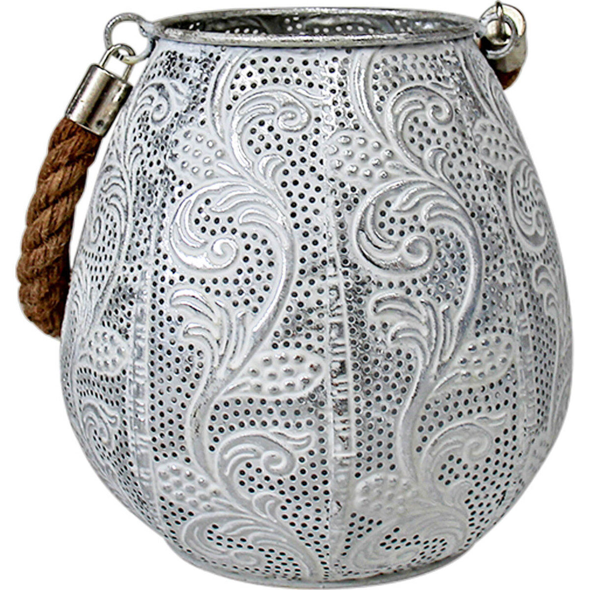 Standing tall at a height which measures 18 centimetres, the Lantern White w/ Rope Handle is made in a dimension which measures 17 centimetres in length and 17 centimetres in width. It also comes with an ergonomic handle that is made through the ingenious use of a thick and strong natural rope with each end of the rope ending in a glossy, metallic hook which has been hooked unto the provided slots on the edges of this Lantern White w/ Rope Handle. The metallic lantern container is lacquered in a white themed palette which is one sure reason it would fit in perfectly with every décor.
