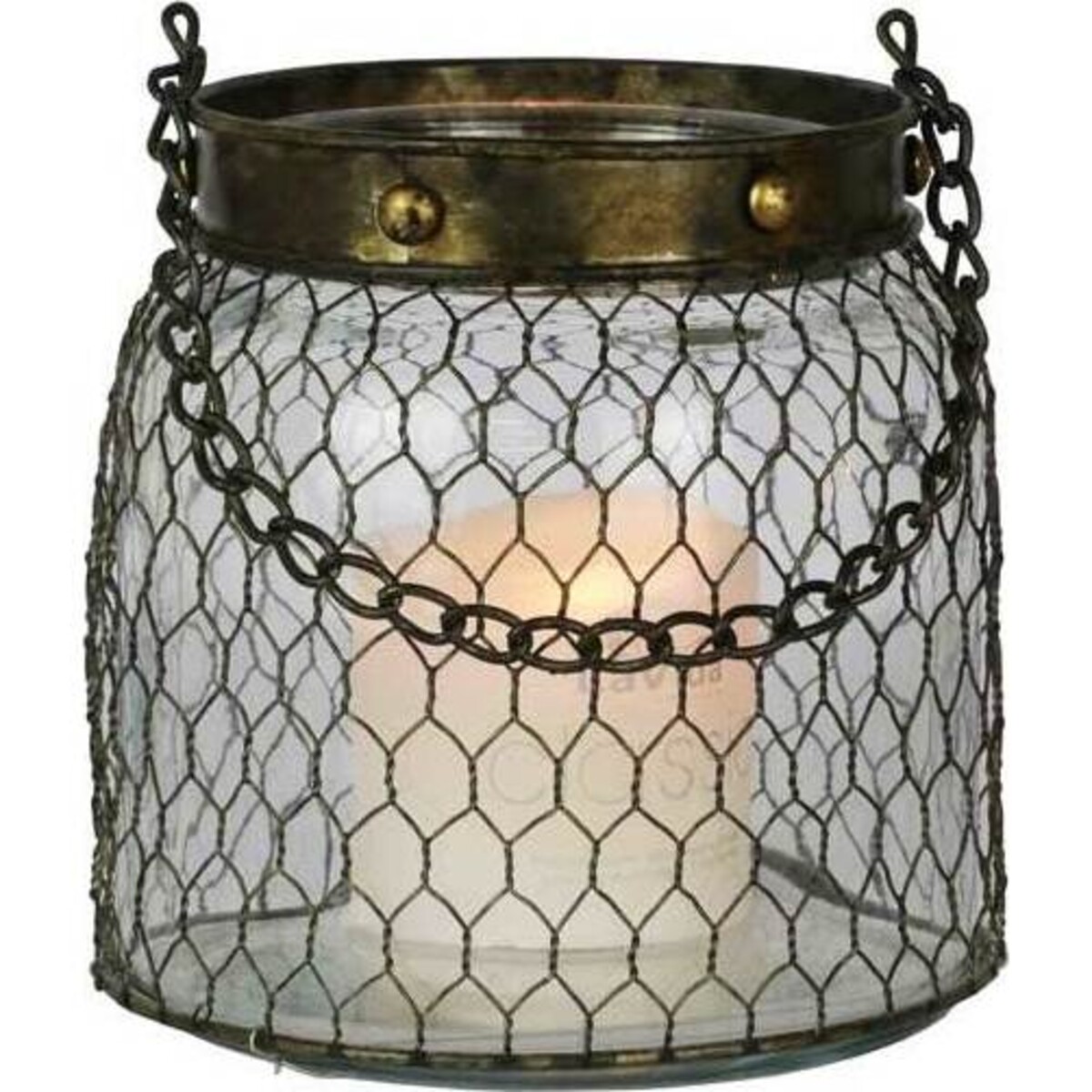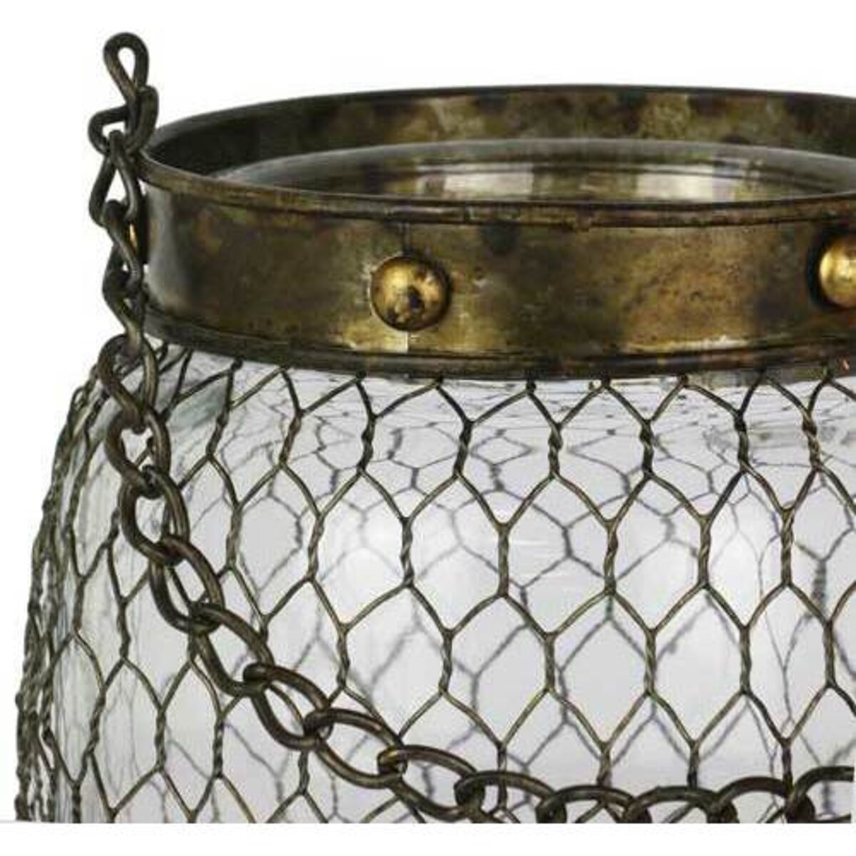 About 17 cm in height ad about 34 cm in all with the height of the handle taken into consideration and about 17 cm in diameter , makes this a compact and very handy lantern that could hold a medium sized pillar candle that will illuminate any space most interestingly. The frame of the lantern is made of wire mesh and the base is round and solid giving t great balance. The top has round ring with which the lantern can be placed in different places. It's rather easy to place new candles or remove used ones from the interiors of the candle holder. The light filters though so wonderfully through the wire mesh that surrounds the body of the lantern. Delicate yet sturdy enough and designed to allow the filtering of light through the glass and the mesh. The glass cylinder will allow the flame to remain undisturbed despite winds if the lantern is taken outdoors. The metal chain will allow one to carry the lantern around wherever one desires to place it.