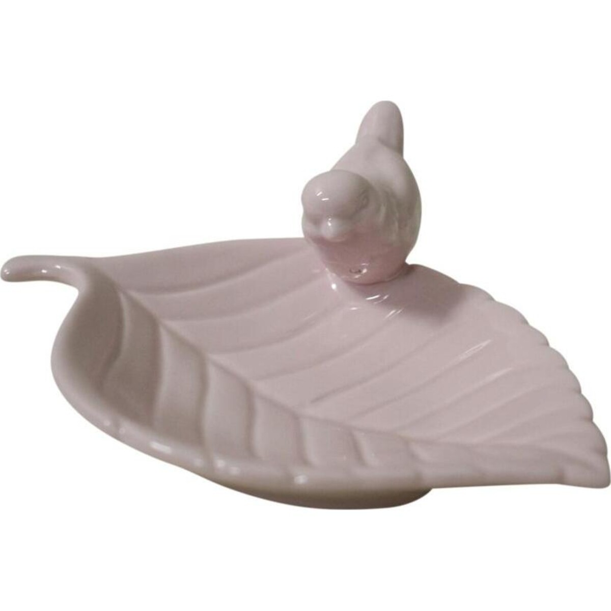 Gift your ceramic ware collection a new addition that you would be rather proud to display. Here is a superbly crafted plate that is all of 13 cm in length and showcases a design inspired by nature. There are deep venation seen on the upper portion or the face of the plate. The base has a round stand like portion which allows the plate to get a tiny elevation off the base. The slightly undulated edges looks like one would see on the edges of real leaves. A tiny bird sits on the edge of the tray like platter and makes the look of the piece all the more adorable. The smooth finish and shine on the piece display the superb expertise that has gone into creating this flawless piece. Gift this to anyone who loves the look pf classic handmade ceramicware or add this to your own collection of fine china and be ready to rake in the compliments.