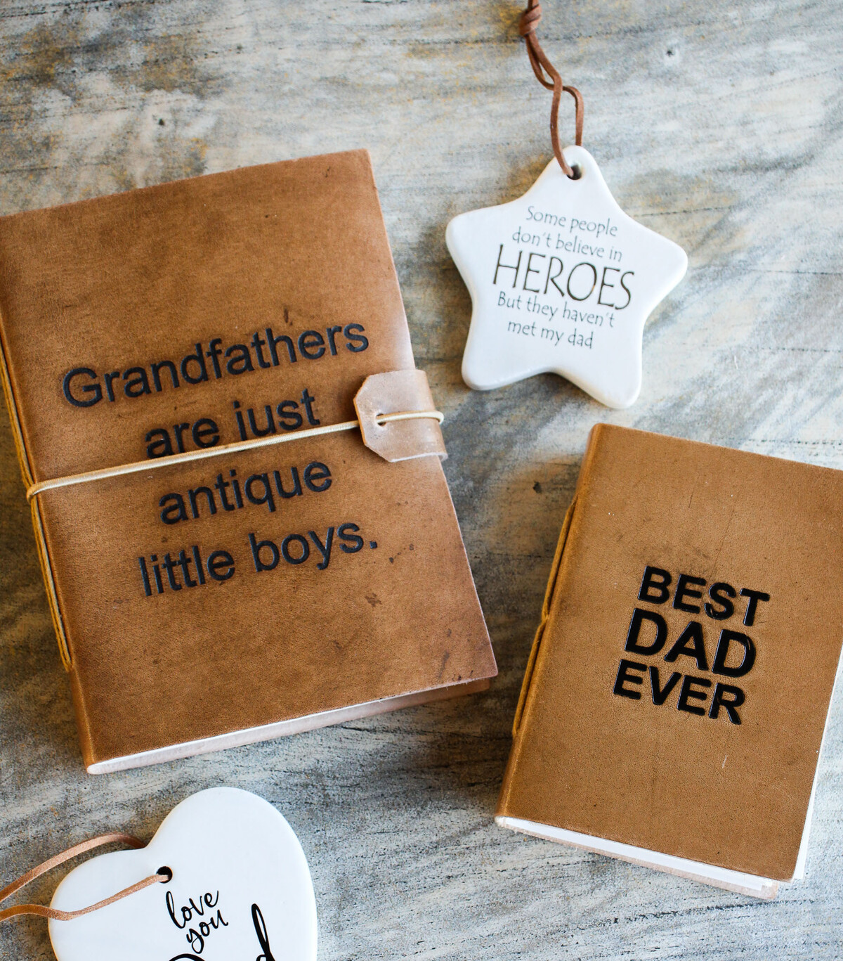 Our Leather N/Book Antique Little Boy really does spark a lot of joy among our team. It is such a clever way of bringing that sense of nostalgia and timeless affection into one’s home or office - and it’s just so well made. The cover really is striking: soft, durable leather in warm, natural tones, and it is laser etched with this charming phrase - Grandfathers are just antique little boys - which, we think, has to be the best thing anyone’s come up with since sliced bread. Such a special way to celebrate grandfathers and their unique brand of magic.