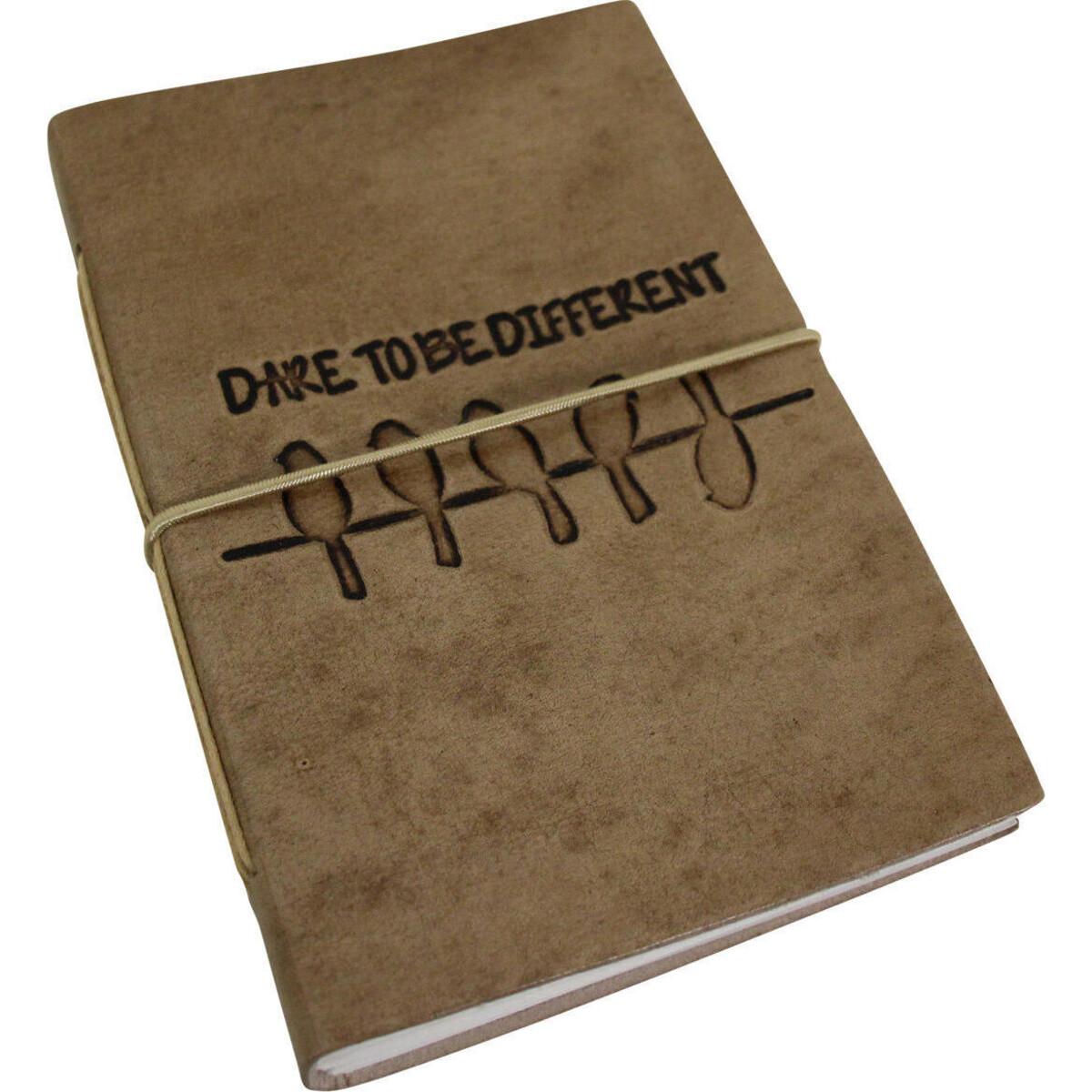 The front cover shows one of the birds hanging upside down instead of sitting normally like the other birds while the bird next to it gives a quizzical look. You immediately feel attracted to this whimsical bird, unlike the others just like this notebook that is guaranteed to stand out for its quality, quote and design. Perfect for writers, planners and creatives, the cover features a sewn and glued nude binding that effortlessly and strongly secures the inside of it and the beige coloured horizontal elastic band protects the notebook's contents.