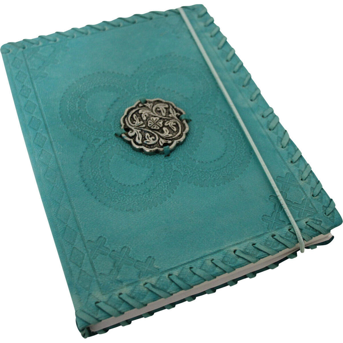 Packed with lots of pages and plenty of personality, its leather exterior has quality in every detail. Right from the cool aqua colour, the intricately carved design in the centre with a silver medal in the middle to the diamond-shaped motifs near its spine and the X-shape designs at each bottom corner, this handsome hand-bound diary pays due homage to traditional craftsmanship. This handy notebook is kept securely closed with elastic, meaning you can keep important documents and paper inside to carry with you wherever you go.