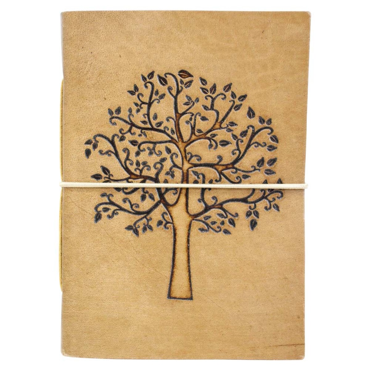 The smart and well-built leather cover is just the beginning of so many great features that this notebook possesses -right from it gorgeous design in the shape of a tree -the light tan colour a lovely backdrop for the lush branches of the tree that seems to signify, the very diverse and ever burgeoning fertility of our minds to throw up great thoughts. The notebook is 18 cm in height and 13 cm in length. To keep the pages from folding and turning we have band to keep the covers together. The band is necessary to do so. The tan coloured cover is made of smooth and supple leather and it will keep the pages from getting damaged. The quality of paper used is also wonderful. A stunning looking accessory for al who are avid writers and fond of great quality handmade stationery.