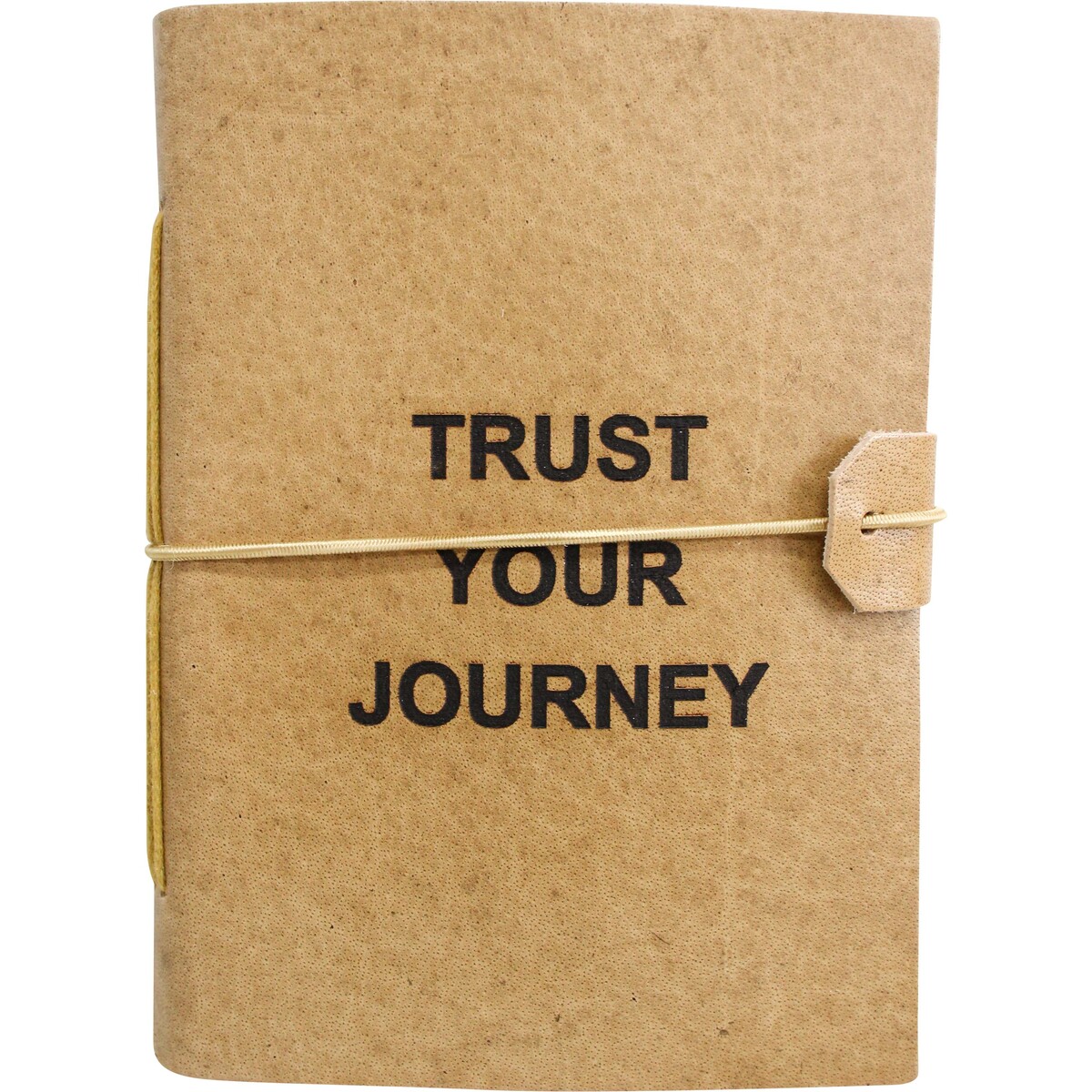 Crafted from genuine leather and high-quality paper, this notebook embodies durability and style. The earthy colour effortlessly complements a myriad of decor styles – from contemporary minimalism to bohemian chic. Its cover carries a powerful message, "Trust Your Journey," embossed in clean, bold lettering, providing a daily dose of encouragement to its user.