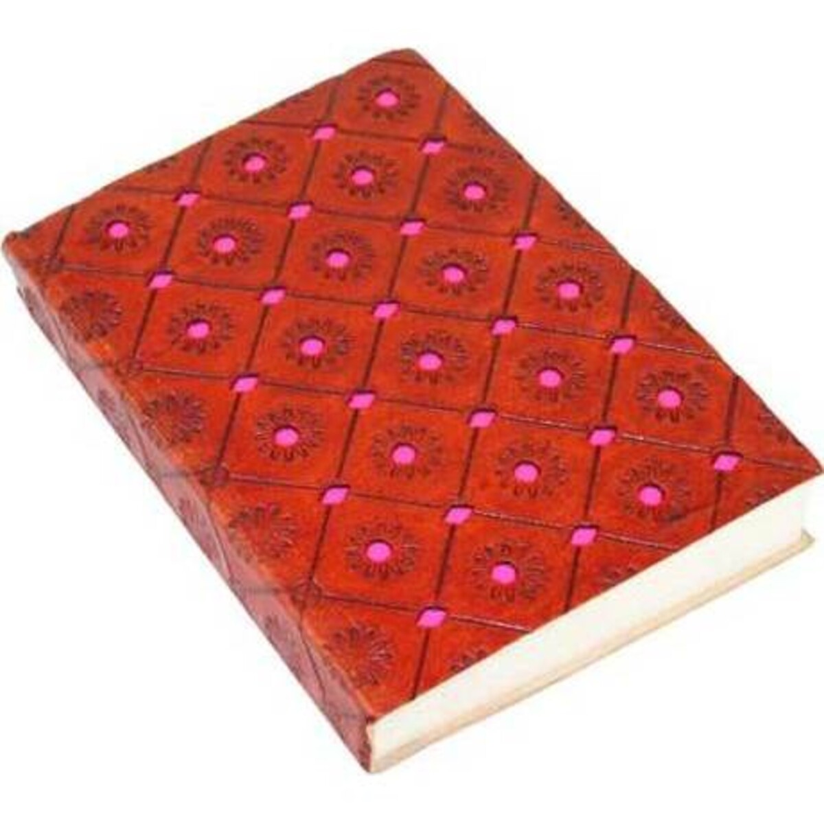 This leather notebook comes in an attractive red ethnic texture embellished with bright dots. This piece is bound to turn many heads. Customers will be attracted to its unique look and the fact that it would be a perfect gift for somebody they know who likes to write or keep a journal. A leather notebook such as this one can last for a very long time and will even look great as a decorative piece in a study or office space. A gift like this is bound to be appreciated and well used while the leather covering for the notebook will ensure that it is sturdy and won't easily be subjected to daily wear and tear. Reasonable, thoughtful gifts are sure to be attractive options for your customers.