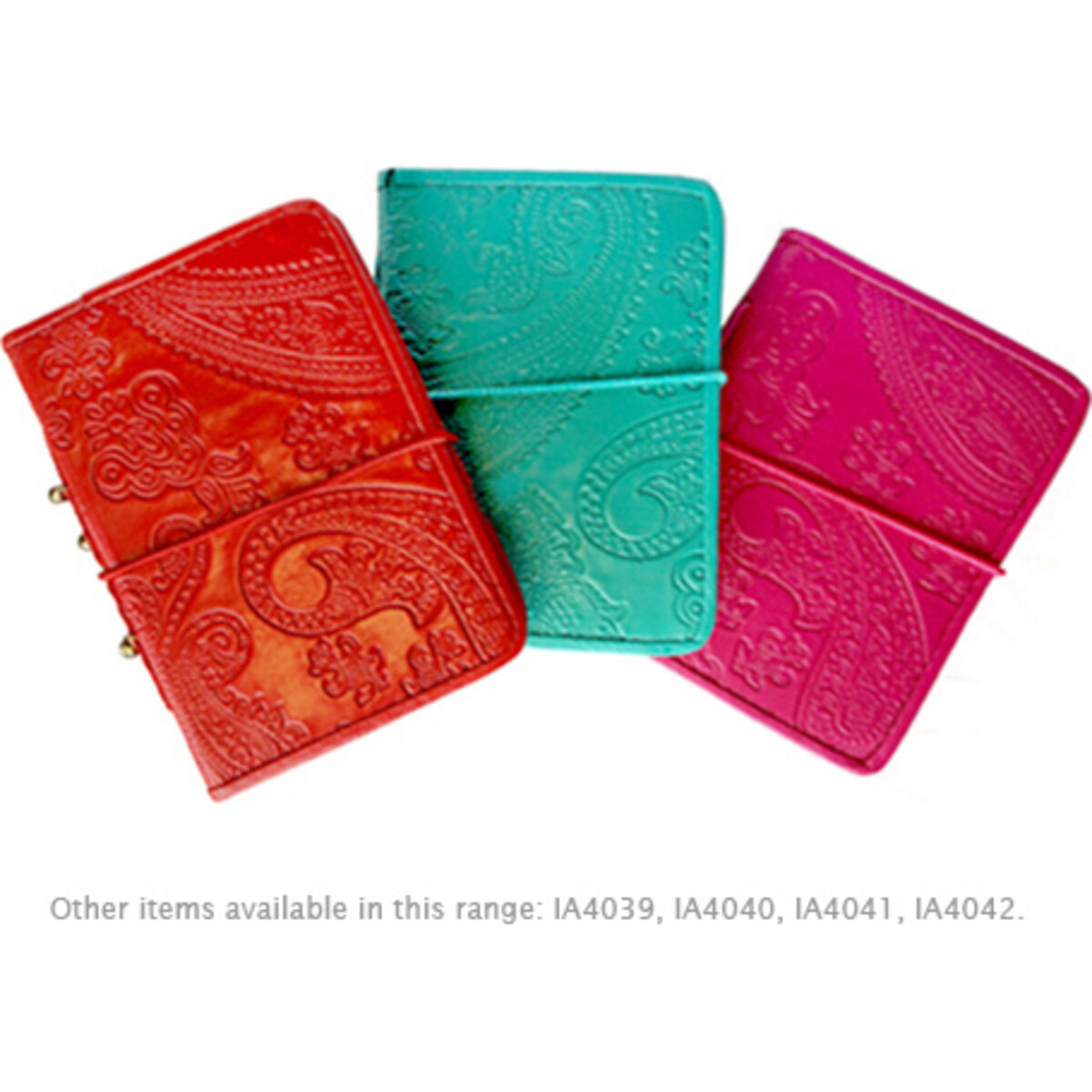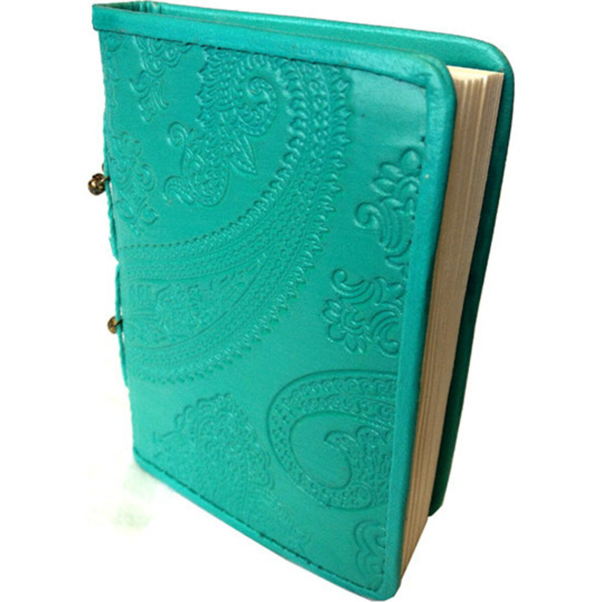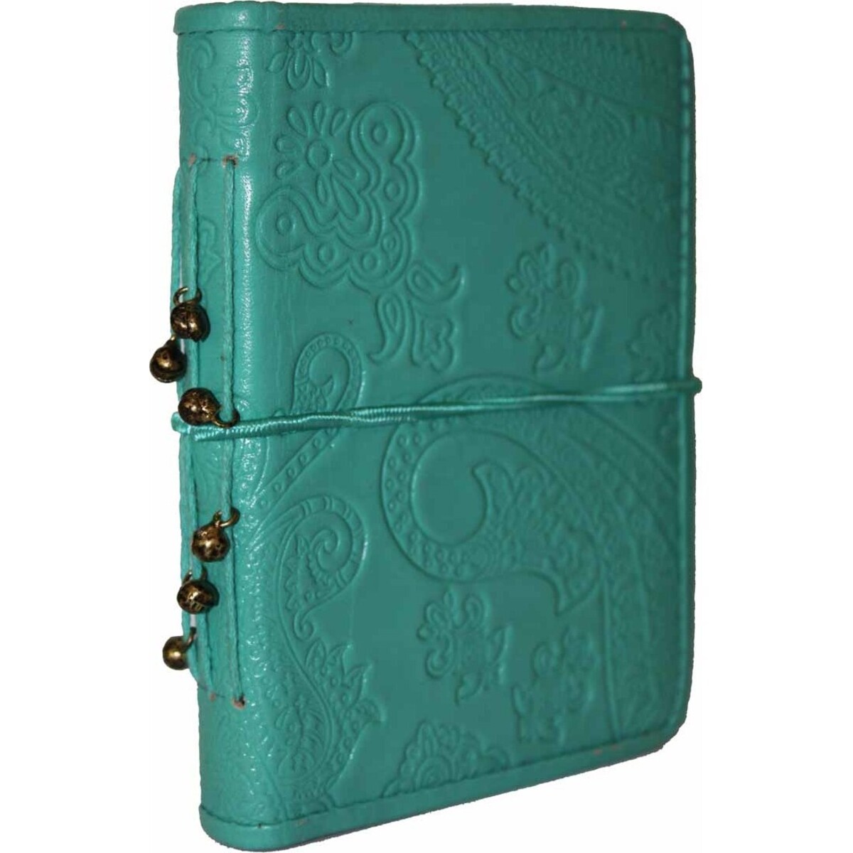 The Leather Notebook Aqua Sellado SML is an aquamarine-coloured leather notebook that features beautiful embossed patterns. Also, the spine of the notebook is adorned with exquisite-looking little bells that add to the style.