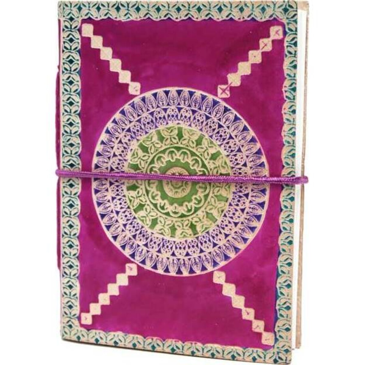 Introducing the Pink Circle Leather Notebook from Lavida. Featuring purple and green elaborately detailed circles at the centre, along with white diamond shapes and a blue ornate pattern around the edges, these notebooks are anything but standard and boring. They're perfect for those who want style when they put pen to paper whether they're writing out their next new novel or their latest shopping list. A purple cord allows the notebook to stay closed when it's not in use, so it can easily be transported from one location to the next without a problem.