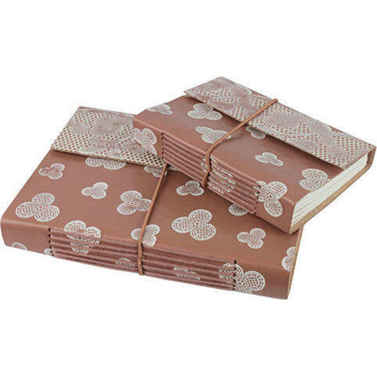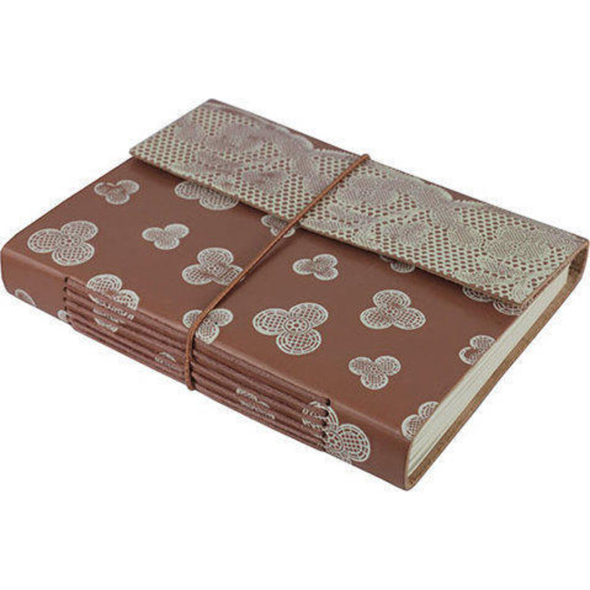 It ties up - as if making sure, your ideas do not spill out. This notebook has the look of artistry and certain stamp of antiquity that comes from its design and style. Made with an eye on tiny details that would make all the difference to its look, this tie up feature notebook has a pretty floral pattern that makes it all the more pretty - delicate yet sturdy in its look, elegant stylish - ideal as a table journal or as notebook you could carry as your travel diary. Made by hand, it has a wonderfully strong binding, the edges rounded and not too knobbly. The quality of paper used is also superfine. The notebook while not being too heavy or bulky does have adequate sheets to last you through much usage. The leather top notebook makes for a great writing accessory upping the ante on your own personal style.