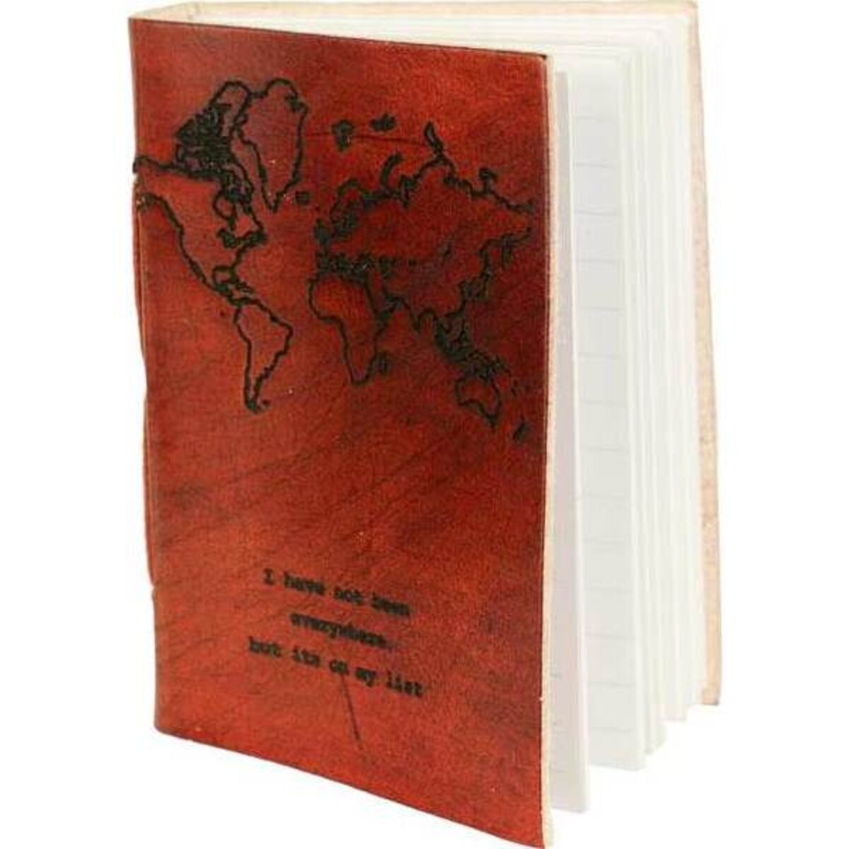 The leather notebook Everywhere large is presented by Lavida for all those whose love for travelling is compounded by their love for writing down their recordings of what why see and experience - a writing that they can use to relive those moments is beyond compare. Such is the love for travel that the leather cover of this small notebook has an imprint of the world map, like an etching, with words that any traveller would love to say.