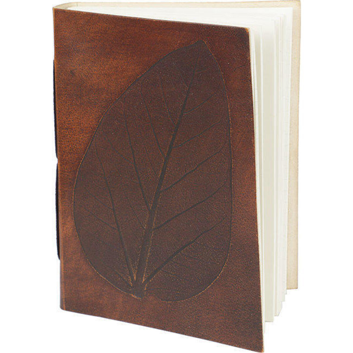 In the times of digitization of words, by the time you reach for the right application that will record it in your phone or tab - the idea is usually lost or diluted - simply reach for a pen and put it to a page in this notebook and jot it down. Simple scribbled ideas - straight from the moment when it was born. Keep them safe in this repository of all your thoughts. Soon you will realize how wonderful it has been to keep your recordings safe in this backup. The leather covered notebook which holds all your thoughts comes attractively embellished with an embossed design on leather. The brown on brown richness is unmistakably classic. The cover adds more value to its looks and its functionality too is at par. Add this to your desk or carry it in your bag to be available for some effortless writing and notetaking. The fine quality binding, the sheen of superior quality leather and the crisp freshness of high grade paper are all features it needs to be proud of.