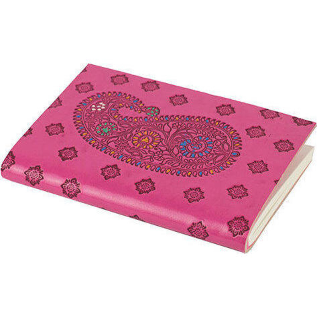Leather Notebook Paisley Stamp Pink