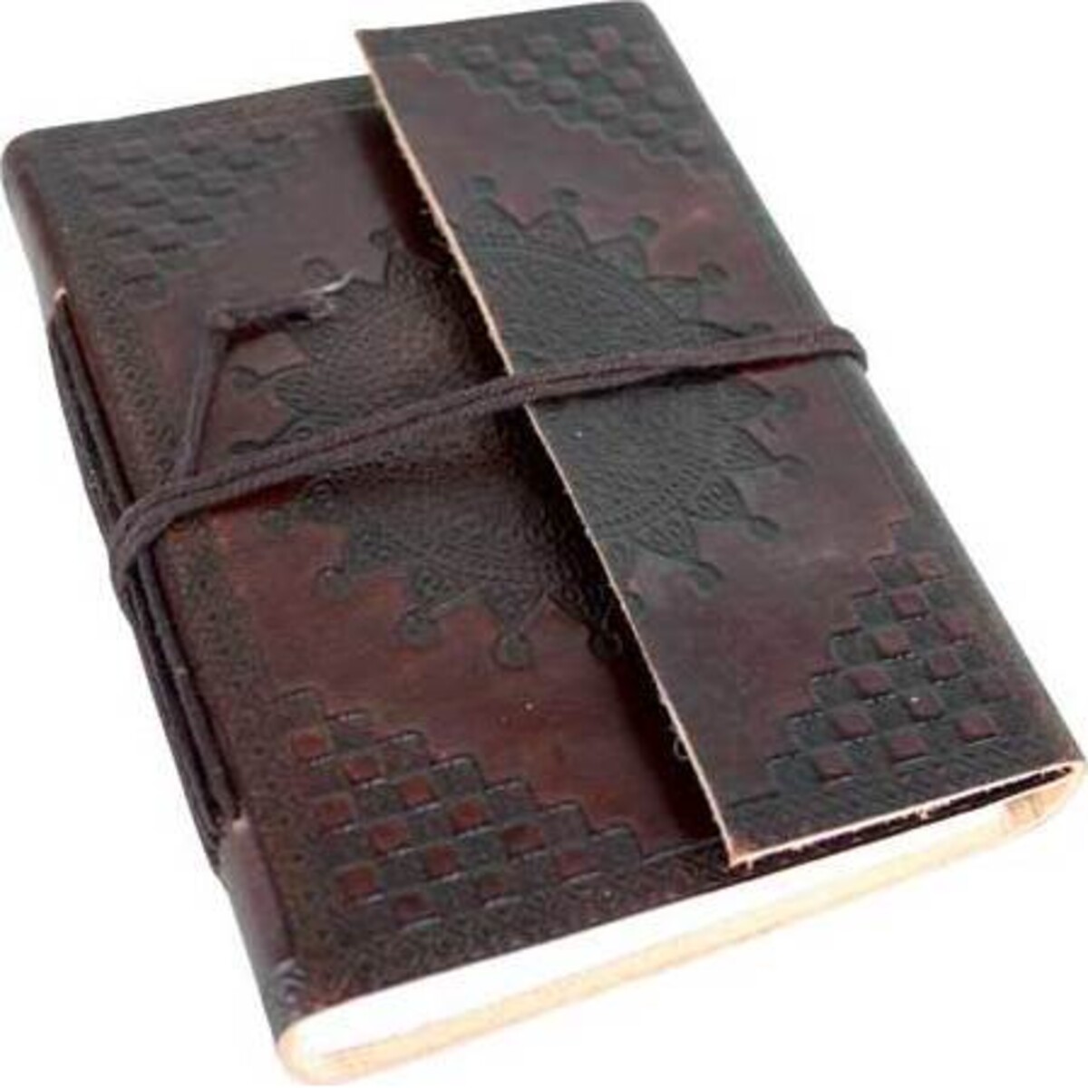 Leather Notebook Star Small exhibits 9x13x1 cm in dimensions and comprises of several pages of paper. These are bound together well in attractive covering of brown leather that bears star imprint on its centre - front position. The leather cover is attractive and stylish, overlapping at the front section, where it's been tied around using a string, which keeps it closed right at the middle. One can buy this item to give out to friend or loved one or even for individual application. Students and professionals of all kinds can have this minimalist notebook in their bags and jackets ready for use when required.
