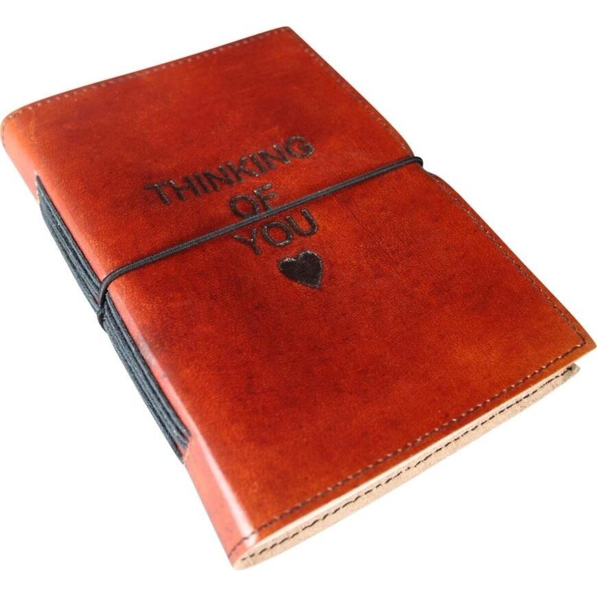 When you turn back pages of journals, it is like reliving those wonderful moments a split second, getting transported to that time. Here is a leather - bound journal quality notebook that has been created by hand crafting of leather of a superior quality and given a touch of fancy design on top - albeit things have been kept rather minimalistic ad basic. It is this understated quality which makes it quite a unique piece as well. This tan coloured embossed leather notebook showcases a wonderful feel of vintage heritage owing to how simple the design has been kept. But for the message carrying much love, it in reality has no other pattern or design, but for the gorgeous colour and embossing that has been added to the leather. The tie up feature adds greater design detail ensuring the pages remain fold free and do not begin to look shabby when that covers are not in place. The leather top will continue to age gracefully acquiring grains and creases which will increase its beauty. The length of the notebook is 18 cm and its width is 13 cm making it a fabulous find for journals.