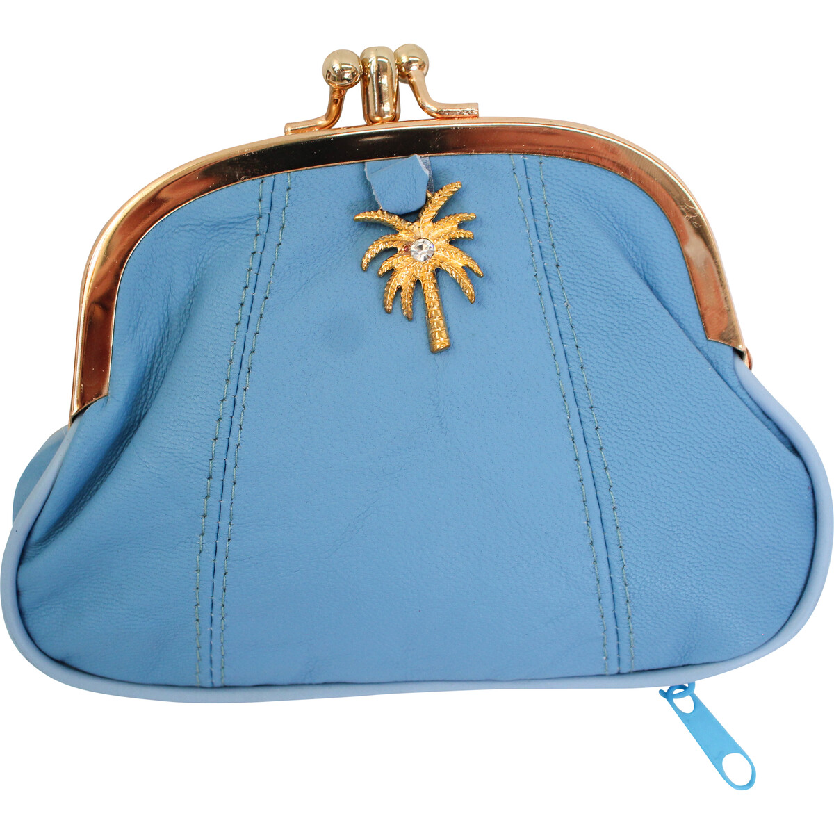 Crafted using premium quality leather material and with the opening lid made through the use of high quality metallic material, this Leather Purse Palm Sky was surely made with the intention of making a big and bold aesthetic movement. Its blue themed palette would especially blend in fashionably with most outfits that your female customers might want to rock with it. Another alluring feature of this purse is the nature infused ornamentation through the use of the figurine of a palm tree.