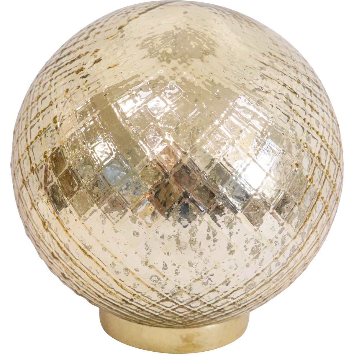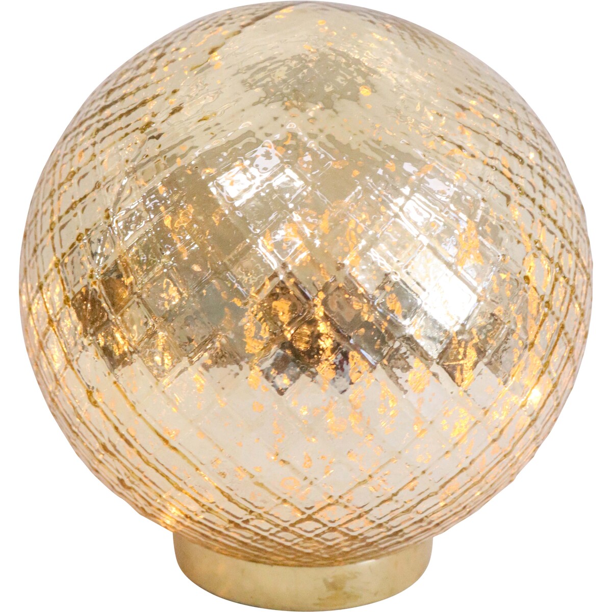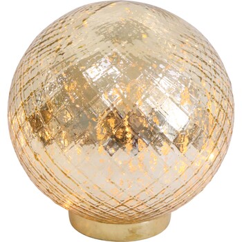Our LED Glass Ball in Small Gold is a stylish choice for anyone wanting to add a modern, inviting accent to living rooms or bedrooms. This is a beautiful sphere that brings together the textures of classic glasswork and the sparkle of gold, finished with soft, warm LED light for an effect that's both subtle and quite striking. We love how it stands out on display shelves or helps frame product groupings in store window settings as well. It's an easy-to-use home addition too - just pop in two AAA batteries, no need for nearby power points.