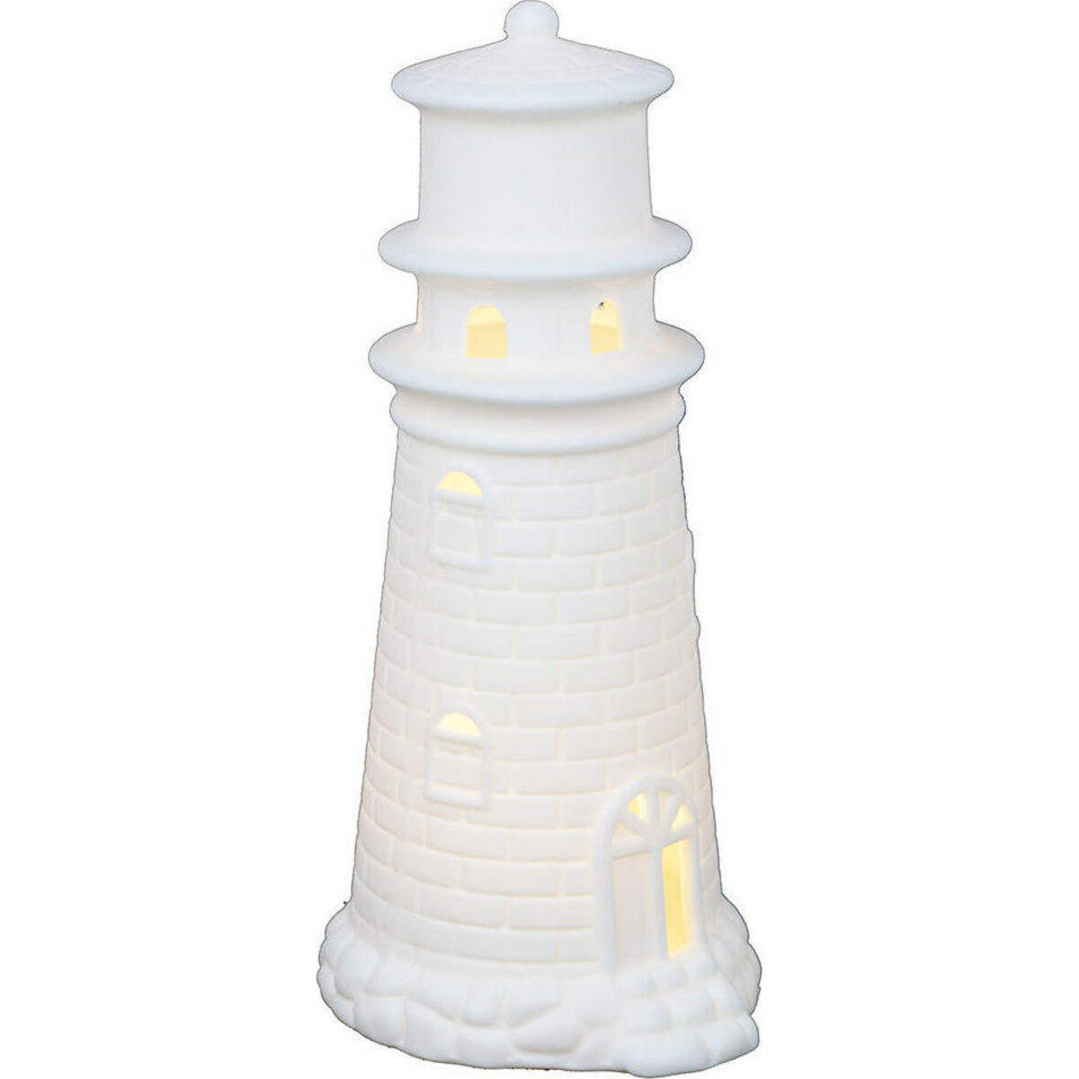 Featuring the look of a perfect harbour - here is that one lighthouse that could give your home the touch of magical coastline, the serenity of the ocean and the legends that surrounds this saviour of the sailors. Made from porcelain, it has this classic beauty that hints at fragility, yet the structure has been created in such a manner that its resemblance to the tower that saves the lives of many a crew and ship, can be seen in its tiny stature as well. The fine quality of porcelain makes it almost transparent enough to allow its light to be visible from the outside. This glow is what makes this such a covetable addition to your decor. About 18 cm in height, the maximum diameter of the tower is at 8 cm while it base is solid, well balanced and wide. The top is tapering where you can see the tiny little opening through which the inside of the lighthouse is visible. The base also has a tiny doorway. The almost real feel of this piece makes it magical in its impact. As if many a lore of the lighthouse were always true.