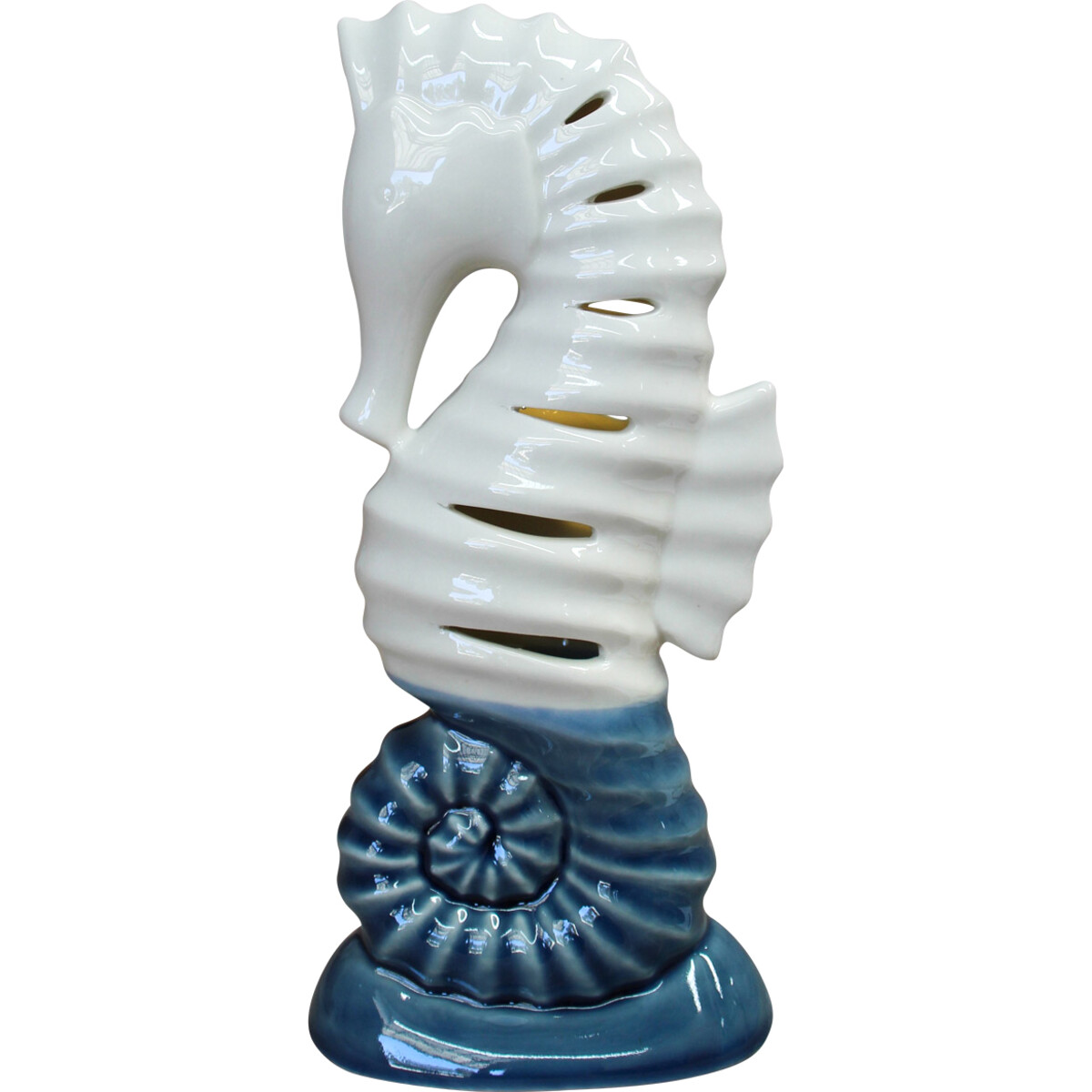 Make a stunning kind of statement this gorgeous piece is all of 23 cm in height and will look fabulous in its dual shades of white on top and blue in a tiny version adding to its beauty. The LED lighting option is perfect for making it glow from the inside and thus helping highlight all its tiny details. The sheen on the ceramic body is a result of perfect technique. Bring that fresh kind of vibe to your spaces with this one-of-a-kind centrepiece that also help illuminate your spaces. Traditional pottery making style has been used to give this piece its one-of-a-kind artisanal look. Add that oceanic vibe in your spaces and make things align better with your love for things beachy and marine. Just the update your spaces need for the upcoming holiday season.