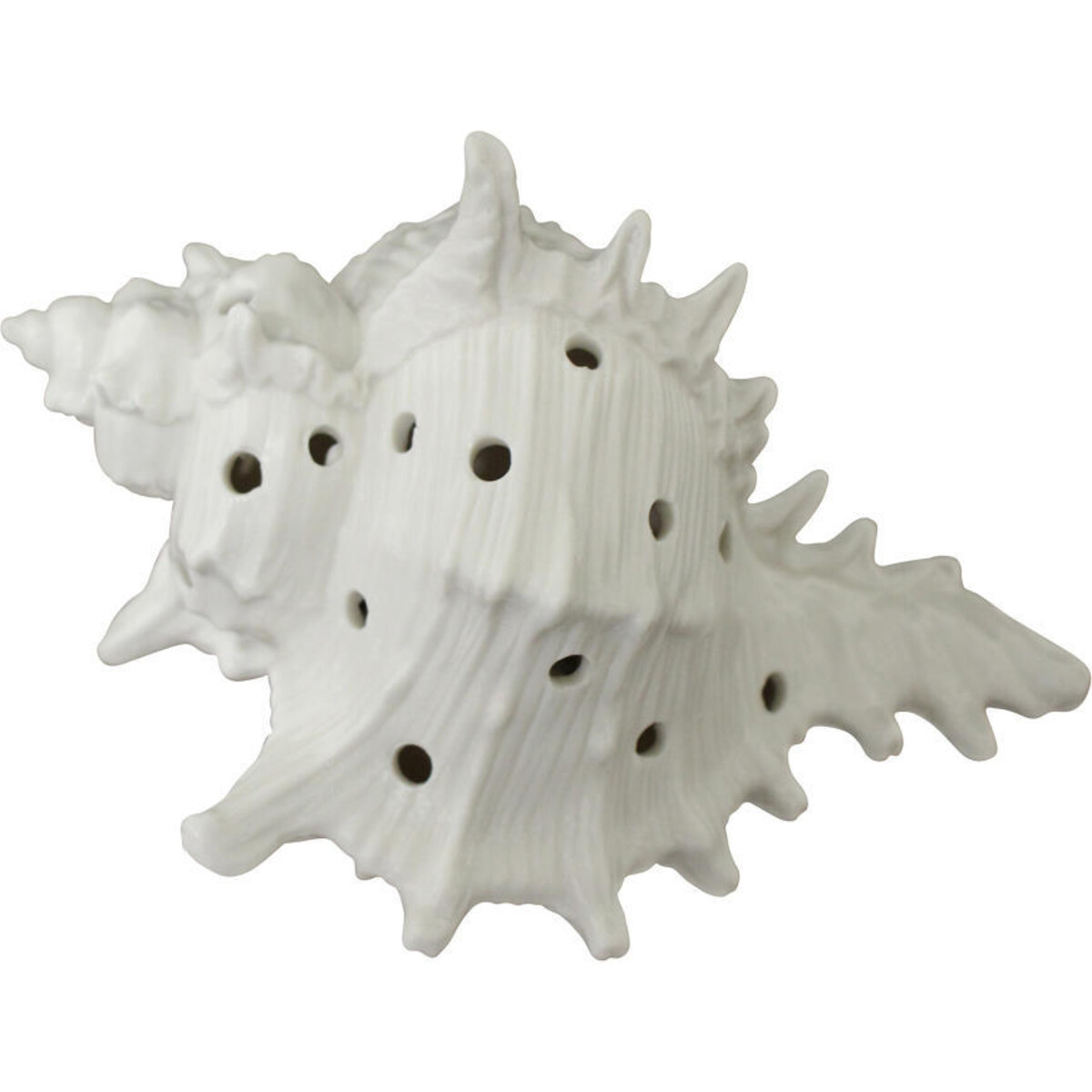 You will notice the tiny perforations all across the surface of the ceramic made shell. A wonderful replication of a real shell, this gorgeous spiky shaped one steals your heart as much because of its fabulous ability to look like a real shell but also because you will be able to create an amazing spectacle with is lighting. The shell has a rough spiky exterior expertly created by hand in a roughhewn creamy white ceramic. The sparkling white adds to the beauty of its look. While not lit up too its will mingle beautifully with all kind of coastal paraphernalia in your décor-be it creatures from the depths if the ocean or the colour palette that reflects your beach love. Add it to mantles, table tops, or even your corner where you needed to remove the dullness from. Add smaller or large shells around it and then the LED lighting comes to play you will see the entire space getting highlighted. About 16 cm long and 11 cm wide, it has been an expertly created replication that any coastal home would love to flaunt.