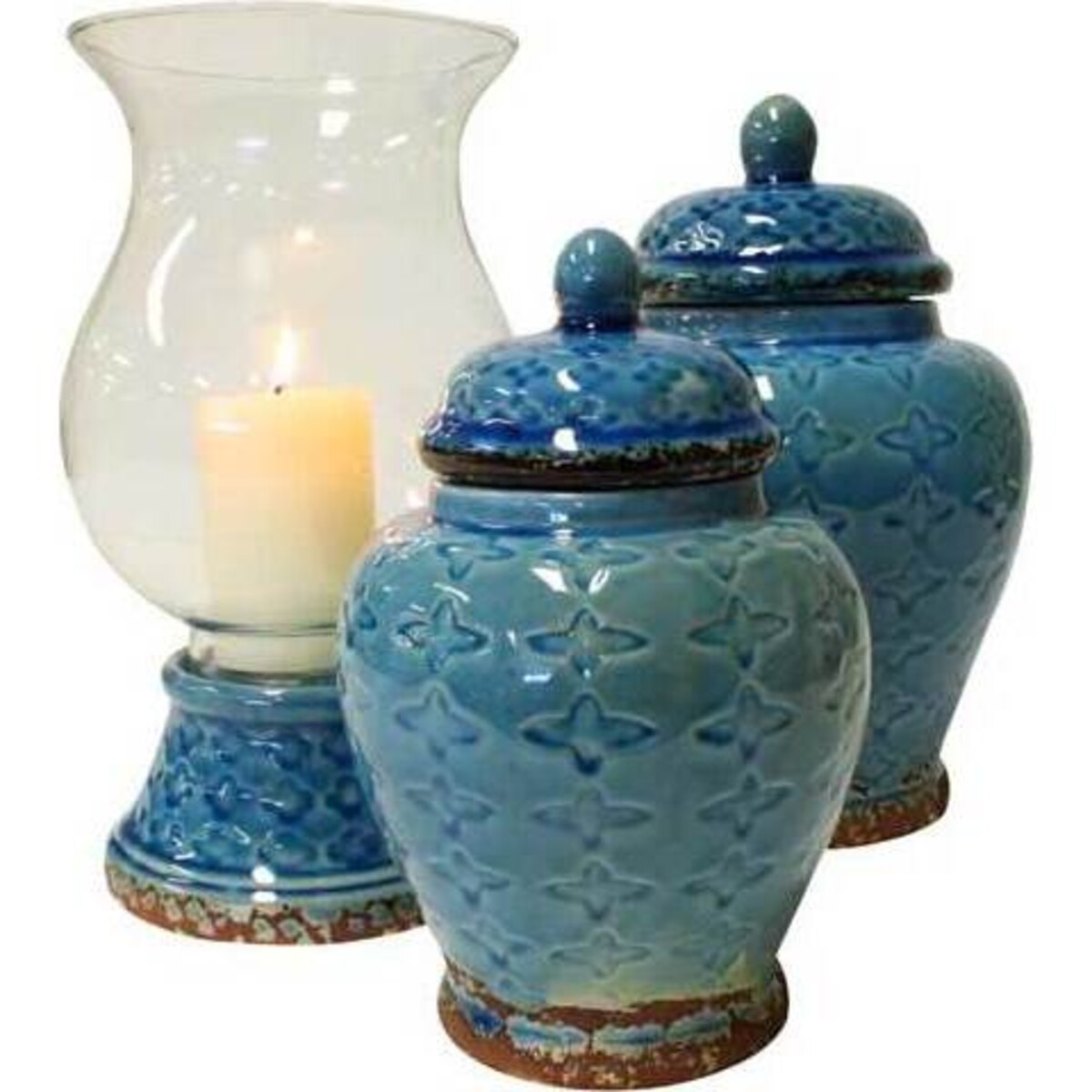 Lidded Urn Blue Croix Small