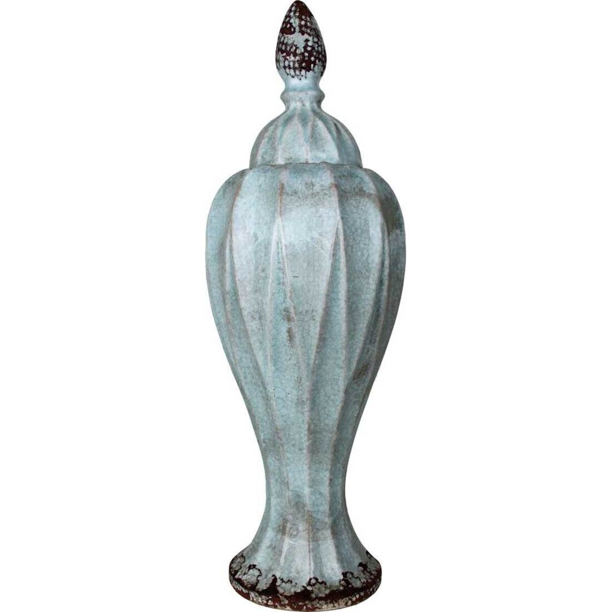 These tall urns feature a slightly ridged design and a bluish - grey tint. The base as well as the tip of the lid are accented with brown to give a lovely contrast to the light coloured body. The decorative accents are lovely to use as is, but you can also allow them to hide several of your smaller items, such as tea bags, jewellery, candy, or craft supplies. Considering their size, they can incorporate well into a variety of smaller areas, including on a mantel or on a desk.