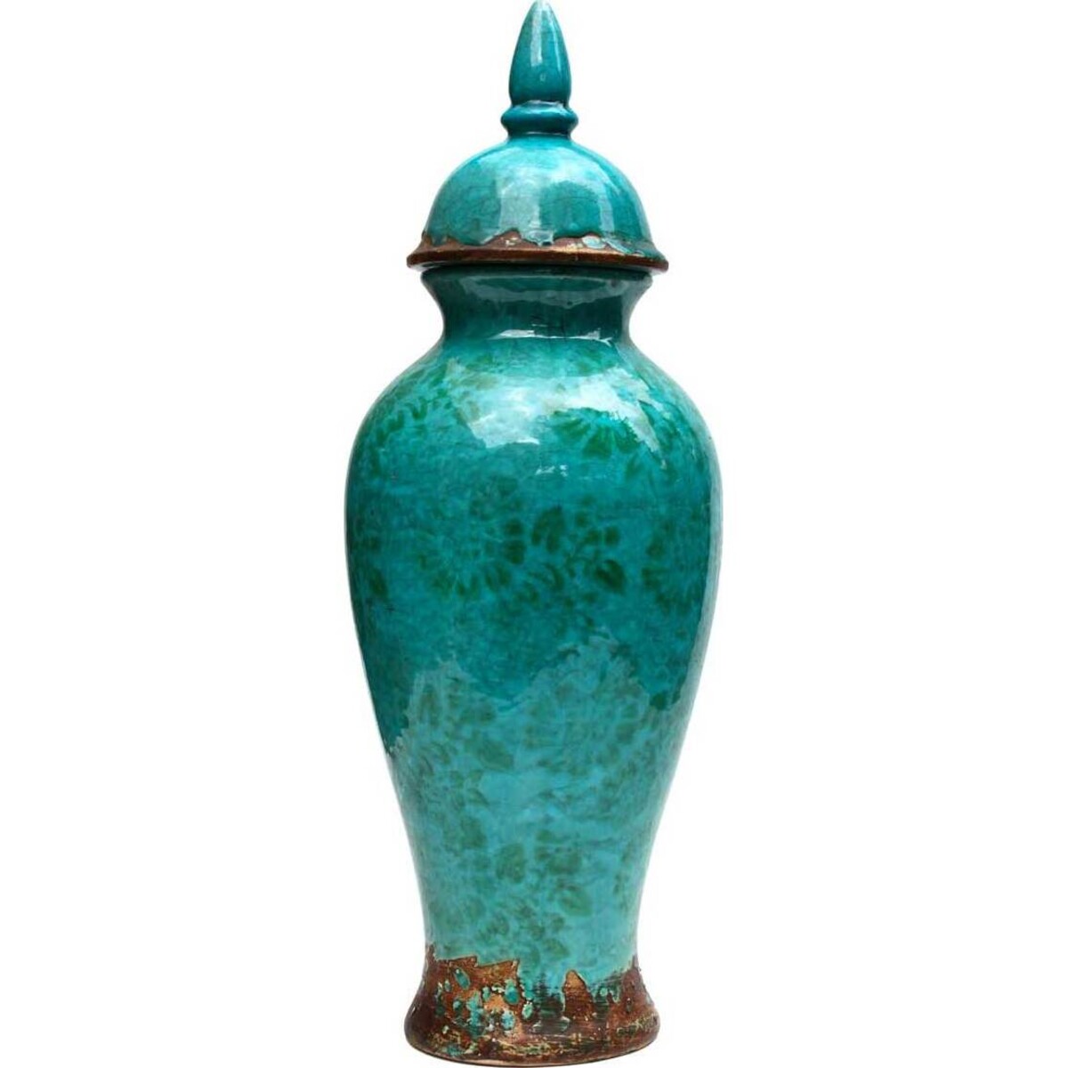 Introducing the Flower Azul Lidded Urn, a beautiful piece of art you'll be excited about displaying in your home. With its chic teal colouring and bronze coloured accents, it adds a bright burst of colour to any area. All of your guests will be whispering about how expensive the piece must be, but only you'll know how much you really saved. Let them think you spent a fortune. You'll be the one who really knows you don't have to shell out a lot to have luxurious items.