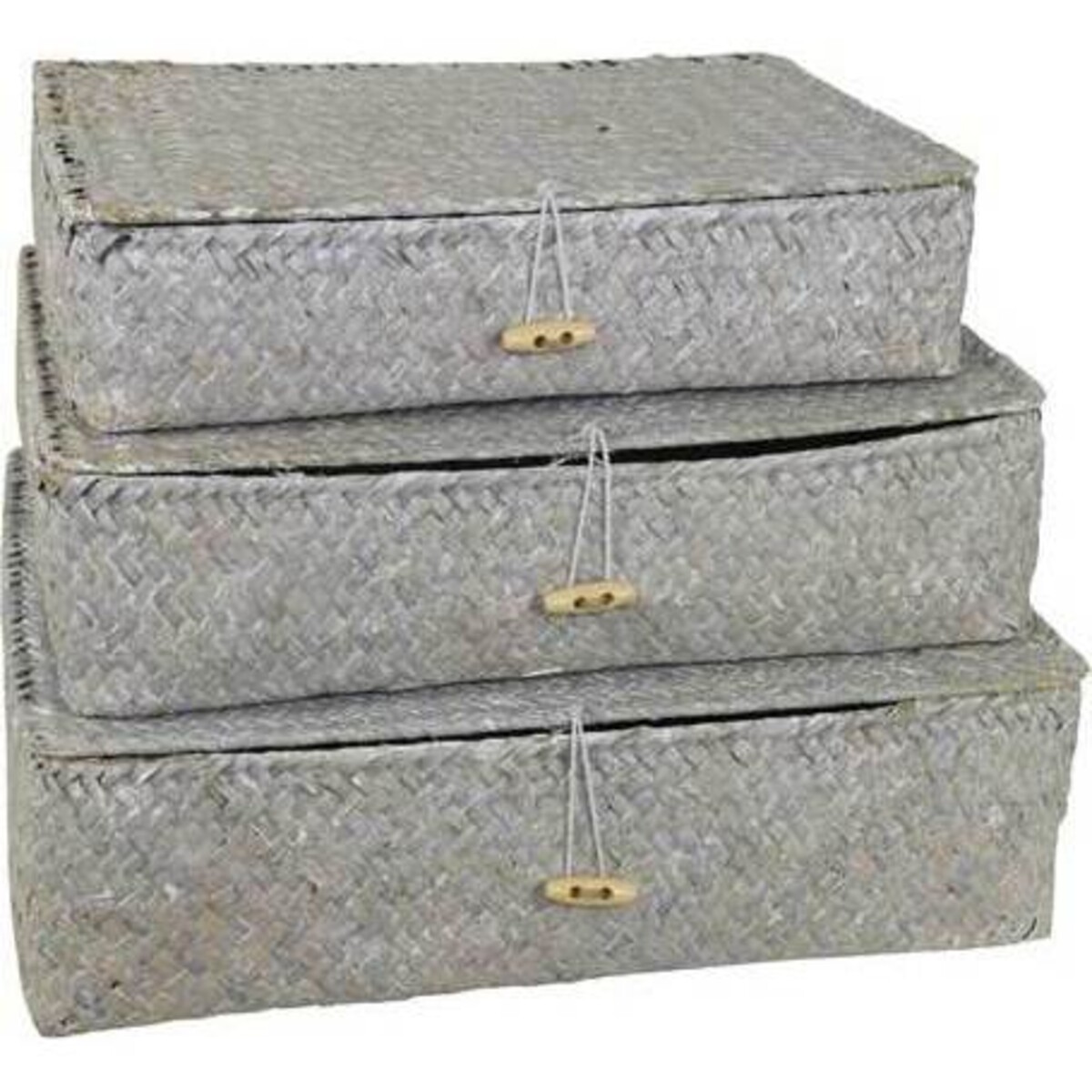 Storage baskets in asset of three that comes with a lid and a toggle closure makes for a fine storage alternative in any home. This set has a very simple yet sturdy design; the hand weaving is evident in its expert finish and the neatness of the weave. The size of the baskets vary from large to small. The shaped is rectangular and the baskets are rather flat with the largest one having a height of 10 cm while the smallest has a mere 6 cm height making them perfect for table top placement too. Keep them with things that should not be left open and one could actually pile one basket on the other to make a neat stack in the corner. The best usage of course would be to decorate the children's study table. The baskets will maintain their natural looks and feel through much usage and will retain their shape. The feel of the rattan is quite soft and the material feels pliable while not really being too soft.