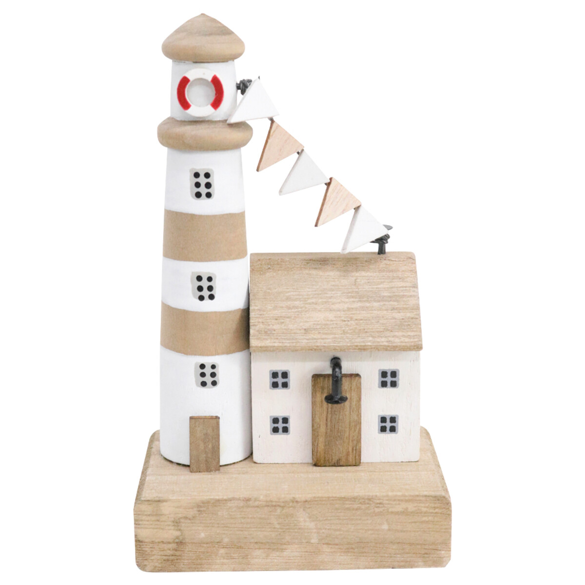If you’re after a standout coastal accent that also fits right in with all the trending Australian décor looks, this Lighthouse Village Flags piece is a real winner. Measuring 8x5x14cm and made from pine wood, it’s got a hand-crafted appeal and plenty of detail - from the adorable red and white lifebuoy to the string of flags linking the house and lighthouse. It’s all about giving your customers those feel-good, homey vibes that really evoke the magic of summer on the coast.