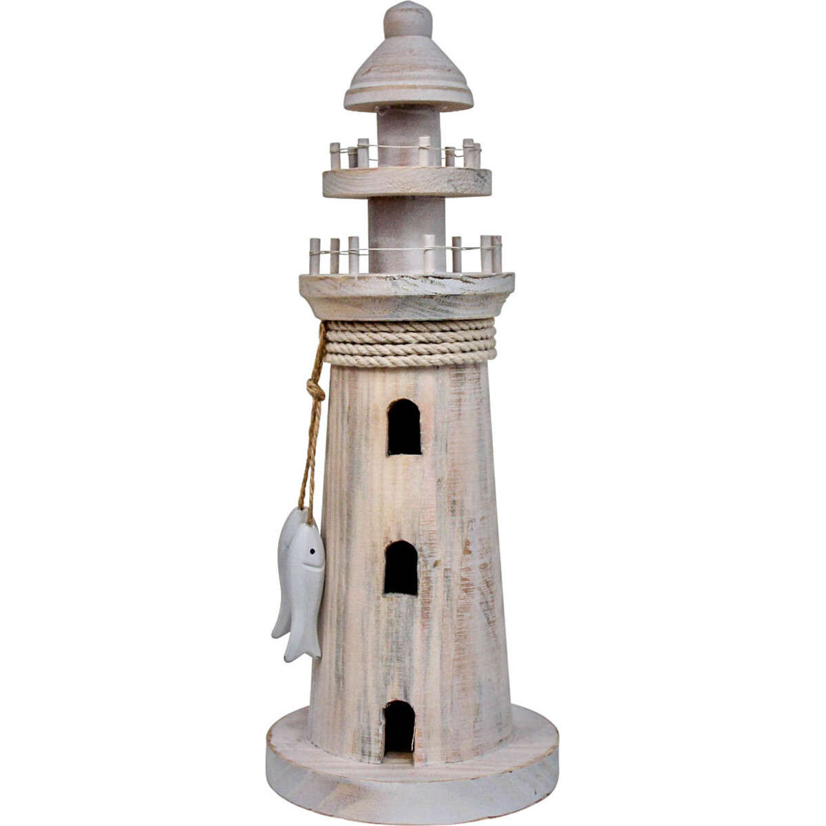 Lighthouse Whitewash Small has measurements of 12x12x32 cm and has been whitewashed to produce a unique reflection of oceanic ambience. Two fish hang in style from a rope at the mid - section of this product. They stand out as the sole elements of life within the amazing architecture depicted by this object of art. A homeowner or office operator can utilize Lighthouse Whitewash Small as a central feature on furniture within their settings. Its fairly miniature characteristics make it easy relocating them time and again as a way of influencing overall decor for a particular setting.