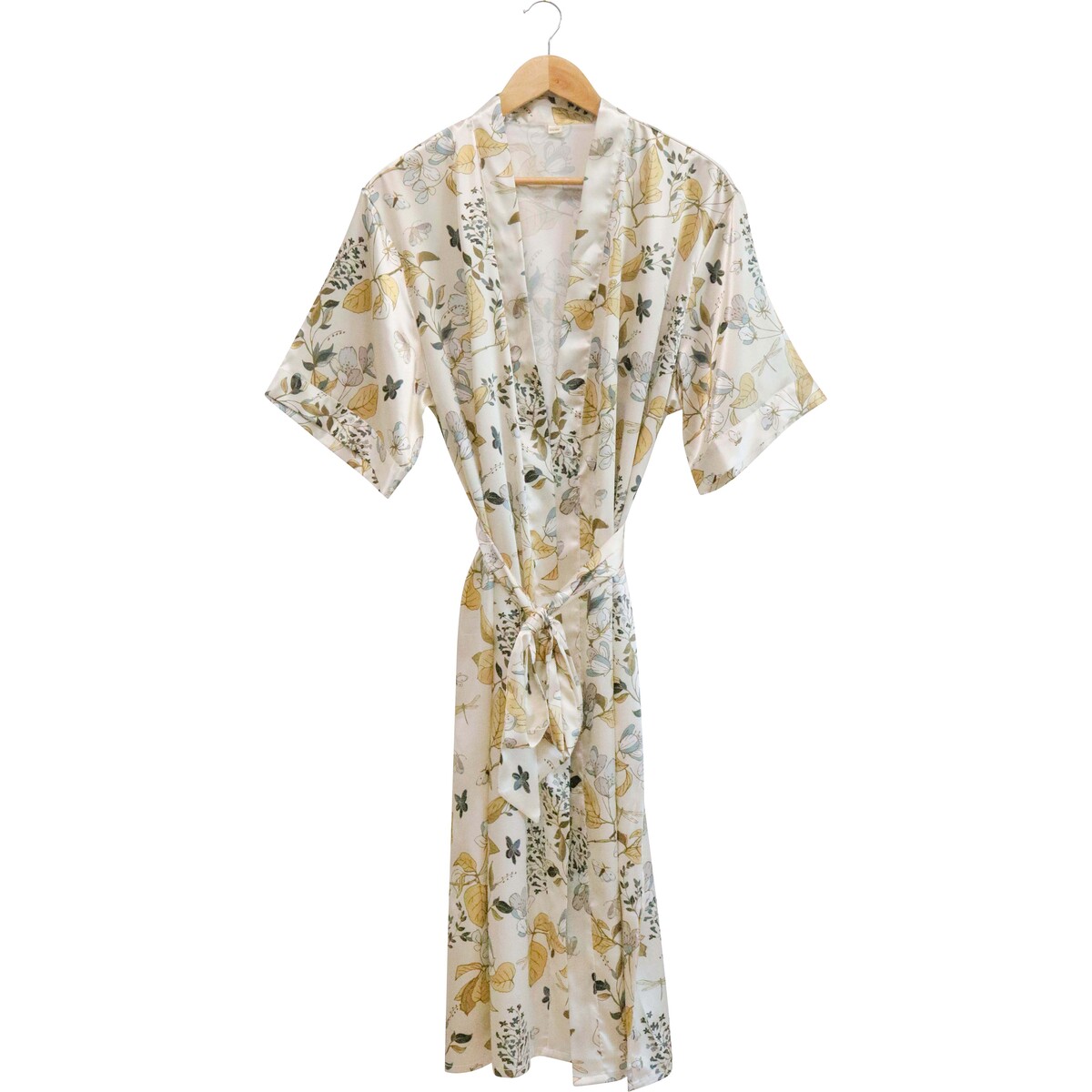 This robe has been created with polyester imitation silk - making it easy to care for at home or during travel. It comes as one size that fits most bodies (sizes 6-16). The cord is about 160 cm long, allowing enough room for a comfortable fit for everyone. The length is around 118 cm, which covers you perfectly! This robe will arrive packed inside a pretty zip bag, which doesn’t count as part of the item!
